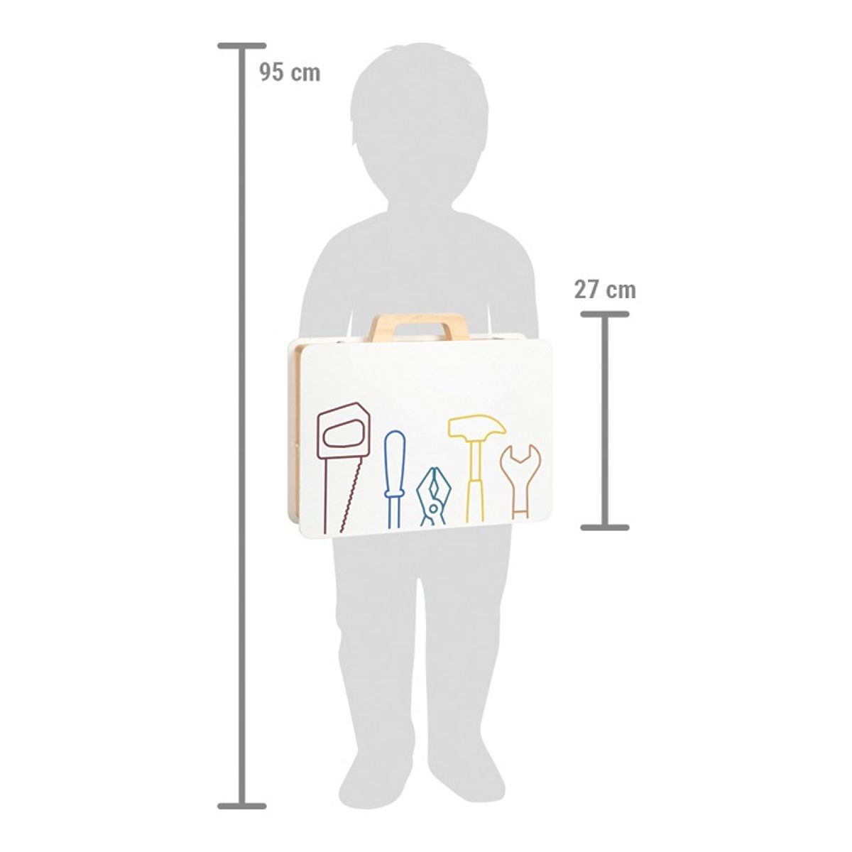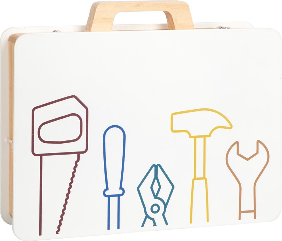 Pozor všetci malí remeselníci aj remeselníčky! S týmto dreveným kufríkom si deti môžu hrať na kutilov. Realistické náradie a doplnky vyzývajú ku kreatívnej hre a rozvíjajú fantáziu. Pomocou jednotlivých stavebnicových dielikov môžu deti poskladať rozmanité konštrukcie (napr. závodné auto, vrtuľník, veterný mlyn alebo lietadlo) a rozvíjať tak svoju zručnosť. Pevný a odolný kufrík je vo vnútri vybavený gumovými popruhmi, vďaka ktorým sú jednotlivé kúsky náradia na svojom mieste prehľadne usporiadané. Taktiež je kufrík opatrený kovovým zatváraním, ktoré udrží všetko bezpečne uložené a drevenou rukoväťou prispôsobenou rúčkam malých kutilov. Sada obsahuje: kufrík, kladivo, kľúč, skrutkovač, kliešte, pílu, 11 skrutiek, 12 matíc, 2 obdĺžnikové perforované doštičky, 2 malé perforované doštičky, 4 stredne veľké perforované doštičky, 2 perforované doštičky v tvare kosoštvorca, 4 silné podložky, 4 tenké podložky, 2 ozubené kolesá. Hlavné vlastnosti: robustné a odolné prevedenie5 drevených nástrojov (kladivo, kľúč, skrutkovač, kliešte a píla)komplexné príslušenstvo vrátane skrutiek, matíc, ozubených kolies, sady podložiek a perforovaných dielov v rôznych tvaroch a veľkostiachgumové popruhy v kufríku držia náradie počas prepravy pohromadekovové zatváranie zaisťuje, že sa početné príslušenstvo nestratímnožstvo herných možností na cestáchtrénuje jemnú motoriku a sústredenierozvíja fantáziupraktické a atraktívne balenievýborne sa hodí k ostatným produktom rady Workshopkompatibilné s produktmi rady Nordic, Miniwob