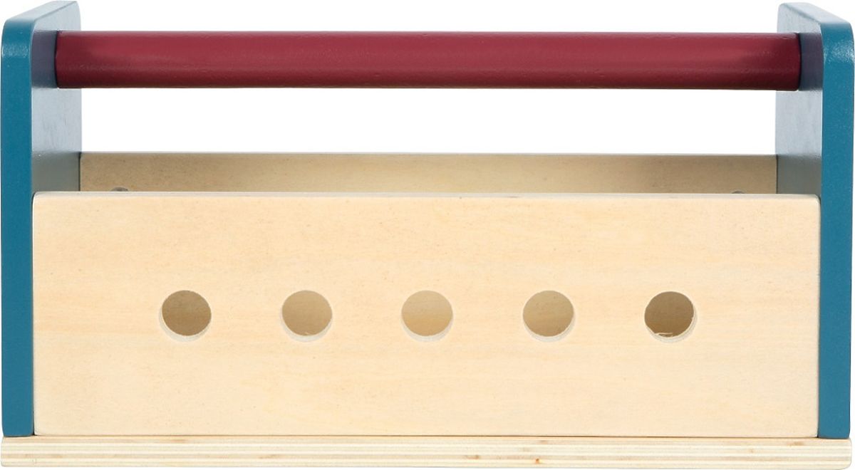 Robustná drevená sada náradia v prepravke s rukoväťou. Praktická hračka 2 v 1, keď prepravku na náradie otočíte, môžete ju použiť ako pracovný stôl! Vďaka tejto vychytávke deťom hračka ponúkne nekonečné možnosti hrania, môžu sa hrať aj na cestách. V balení nájdete 3 ks náradia – kladivo, kľúč, skrutkovač a ďalšie bohaté príslušenstvo. Náradie môžete do prepravky jednoducho uložiť alebo namontovať vďaka jej otvorom. Vďaka tejto sade budú mať malí remeselníci svoje vybavenie vždy po ruke. Sada obsahuje: prepravka na náradie, kladivo, kľúč, skrutkovač, 7 skrutiek, 5 matíc, 2 veľké perforované doštičky, 2 malé perforované doštičky, 1 stredne veľká perforovaná doštička, 2 perforované doštičky v tvare diamantu, 2 obdĺžnikové perforované doštičky, 4 silné podložky, 4 tenké podložky, 2 ozubené kolesá. Hlavné vlastnosti: robustné a odolné prevedenieponk a prepravka na náradie 2 v 13 drevené nástroje (kladivo, kľúč, skrutkovač)komplexné príslušenstvo vrátane skrutiek, matíc, ozubených kolies, sady podložiek a perforovaných dielov v rôznych tvaroch a veľkostiachmnožstvo herných možností na cestáchtrénuje jemnú motoriku a sústredenierozvíja fantáziu a kreativituskvele sa hodí k ostatným produktom rady Workshopkompatibilné s produktmi rady Nordic, Miniwob