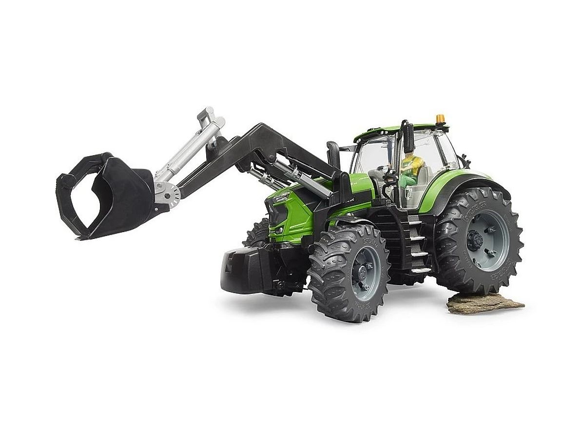 Traktor Deutz-Fahr 8280 TTV s čelným nakladačom je spoľahlivý a výkonný pracovný stroj s perfektnou kombináciou technológií pre profesionálnych farmárov. S pôsobivým výkonom 287 HP je tento traktor schopný zvládnuť akúkoľvek výzvu. Model tohto traktora v mierke 1 : 16 je verný originálu. Kabína vodiča je plne presklená a dvere sa jednoducho otvárajú. Otváracia kapota poskytuje pohľad na motor. Jednoduché riadenie je dosiahnuté vďaka vstavanému kyvadlovému náprave a predĺženému volantu, ktorý možno zasunúť cez strešné okno. Vďaka výškovo nastaviteľnému zadnému závesu možno použiť všetky prívesy profesionálnej rady. Pre ešte väčšiu zábavu sú pripojené nové odnímateľné kolesá. Na tento traktor pasujú všetky poľnohospodárske prívesy BRUDER a je možné ho rozšíriť pomocou Mechanika s náradím BR62100. Hlavné vlastnosti: mierka 1 : 16okná kabíny z priehľadného a nerozbitného plastu, otváracie dvere, otváracia kapota, odnímateľné kolesá, odnímateľné predné závažie, ťažné zariadenie s výškovo nastaviteľným závesom, držiak pre čelný nakladač, riaditeľná a terénna kyvadlová predná náprava, behúne pneumatík z mäkkého plastu, riaditeľné pomocou volantu cez strešné okno traktora, odnímateľný a plne funkčný čelný nakladač, vhodné na hranie doma aj vonku, vyrobené v Nemecku z vysoko kvalitných plastov, kompatibilné s figúrkami BRUDER bworld
