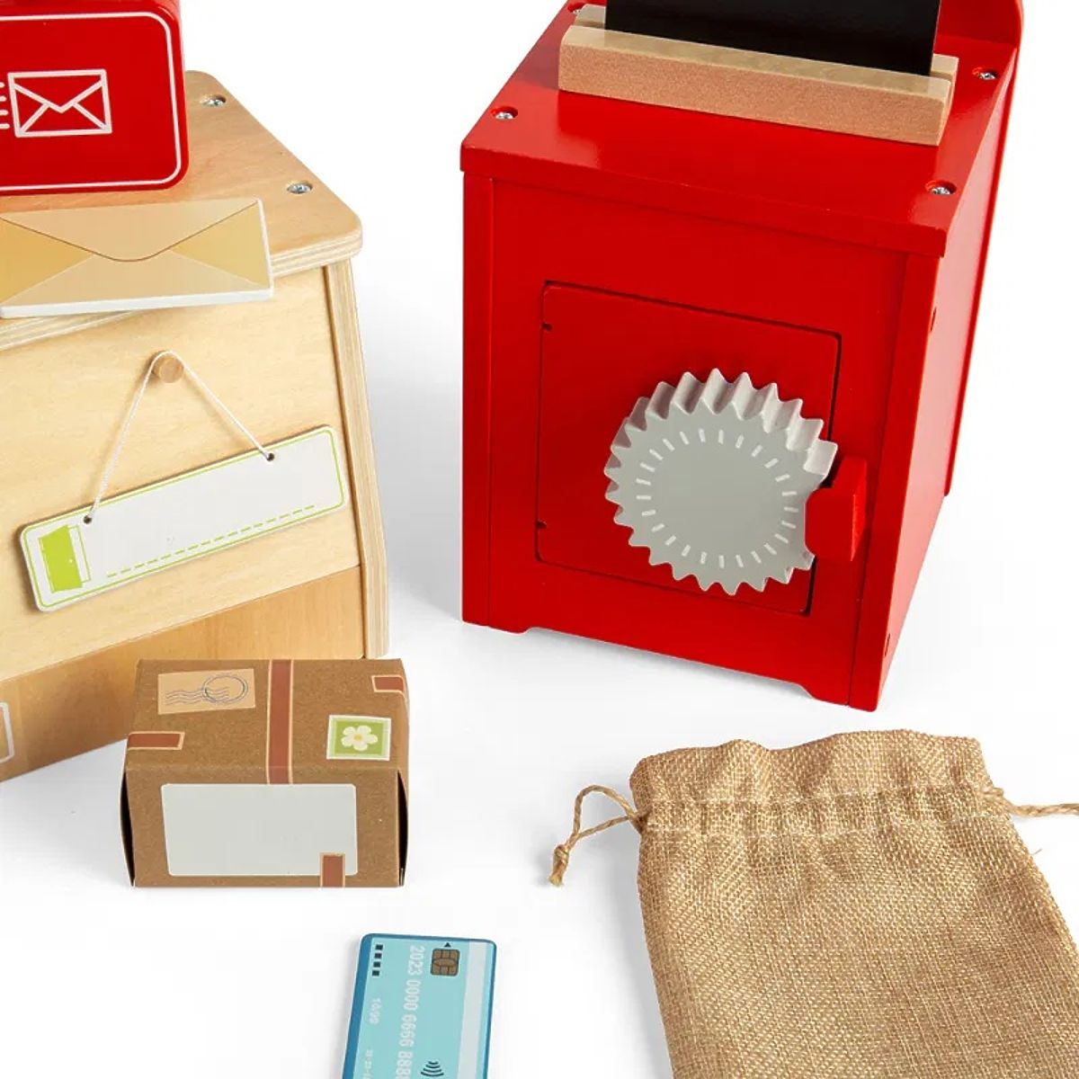 Čo všetko sa robí na pošte? Malí poštári môžu zažiť rušný deň triedením a doručovaním pošty s vlastnou poštovou sadou! Sada obsahuje všetko, čo potrebuje správny poštár k svojej práci: poštovú schránku, pokladňu, váhu, vrece na balíky, balíky, listy, pohľadnice, pečiatku a ďalšie. Hranie rolí je vynikajúce pre detskú predstavivosť, kreativitu, sociálne zručnosti a rozvoj jazyka. Role zamestnancov pošty alebo zákazníkov tiež zlepšia ich komunikačné schopnosti pri precvičovaní hovorenia, počúvania, čítania a písania. Sada je vyrobená z prvotriedneho a udržateľného dreva s certifikáciou FSC® a natretá netoxickými farbami a lakmi. Spĺňa aktuálne európske bezpečnostné normy. Obsah balenia: poštová schránka s tabuľou, pokladňa, váha, vrece, balíky, listy a pohľadnice, kreditná karta a terminál, pečiatka, účtenky Hlavné vlastnosti: 19 dielov rozvíja predstavivosť, kreativitu, sociálne zručnosti podporuje hranie rolí vyrobené z dreva s certifikáciou FSC® vhodné od 3 rokov veku Značka a certifikát FSC® (Forest Stewardship Council) zaručuje, že drevo, z ktorého bol produkt vyrobený, nebolo vyťažené nelegálne a pochádza z lesov obhospodarovaných šetrným či prírode blízkym spôsobom, v ktorom sú dodržiavané prísne environmentálne a sociálne požiadavky. Značka FSC® na výrobku znamená, že svojím nákupom pomáhate chrániť lesy a podporujete šetrné, zodpovedné či prírode blízke hospodárenie, vďaka ktorému sú naše lesy stabilnejšie, zdravšie, majú prirodzenú druhovú skladbu a lepšie odolávajú negatívnym následkom klimatických zmien.