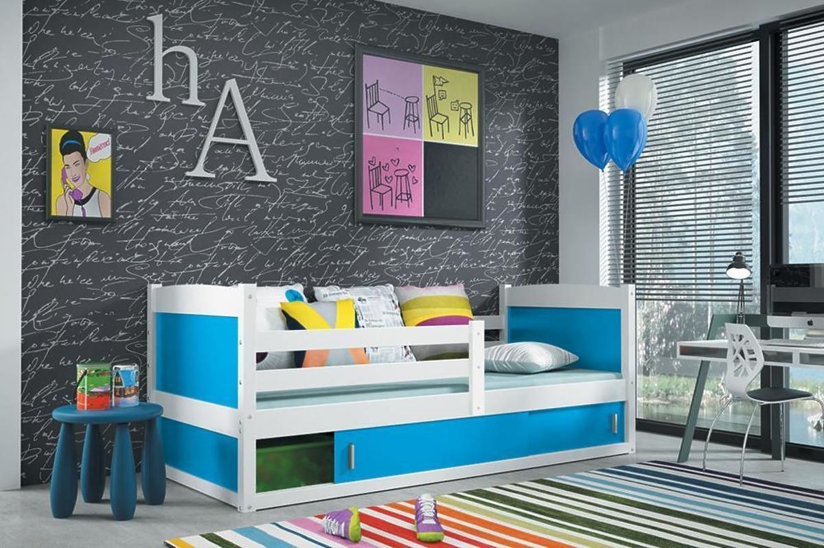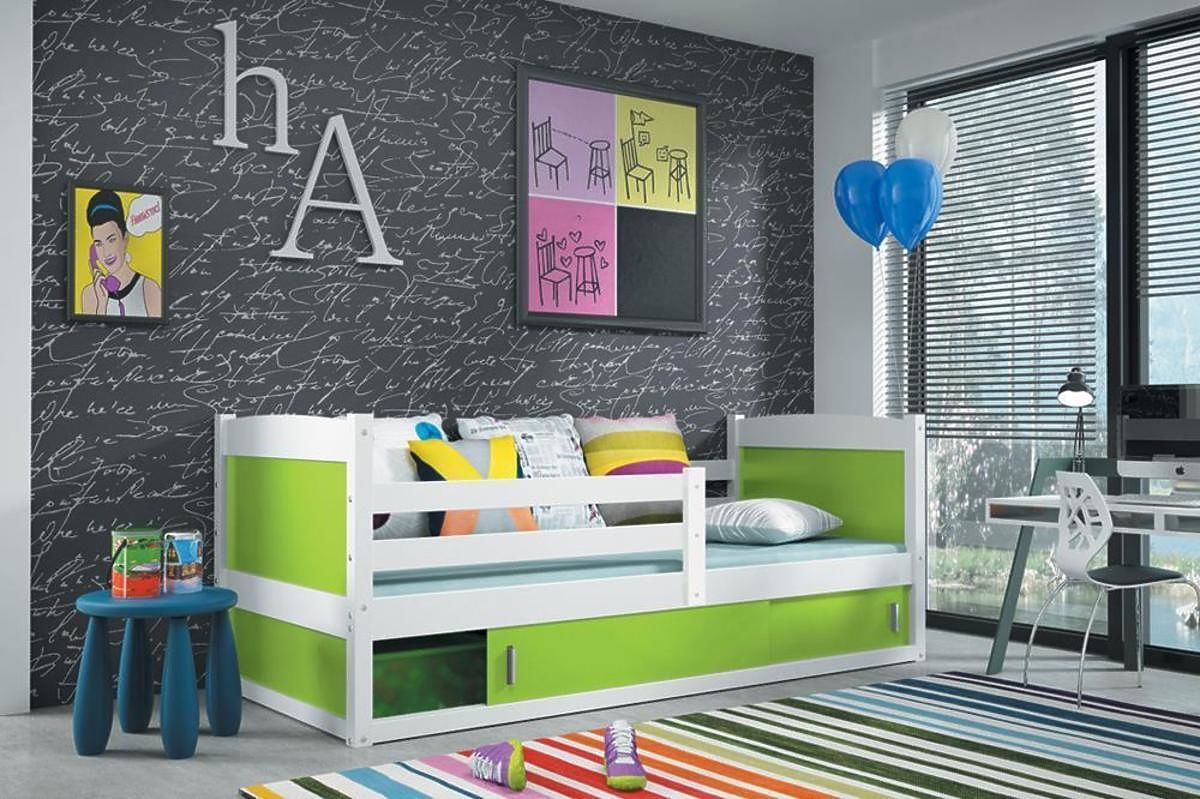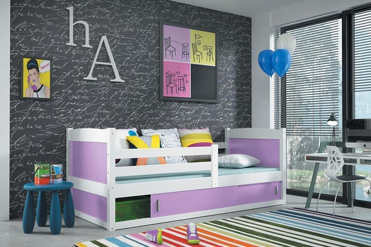 Posteľ ponúkame v dekore bielej v niekoľkých farebných prevedeniach: bielom, svetlo modrom, tmavo modrom, sivom, zelenom, oranžovom, ružovom, červenom, žltom a fialovom.