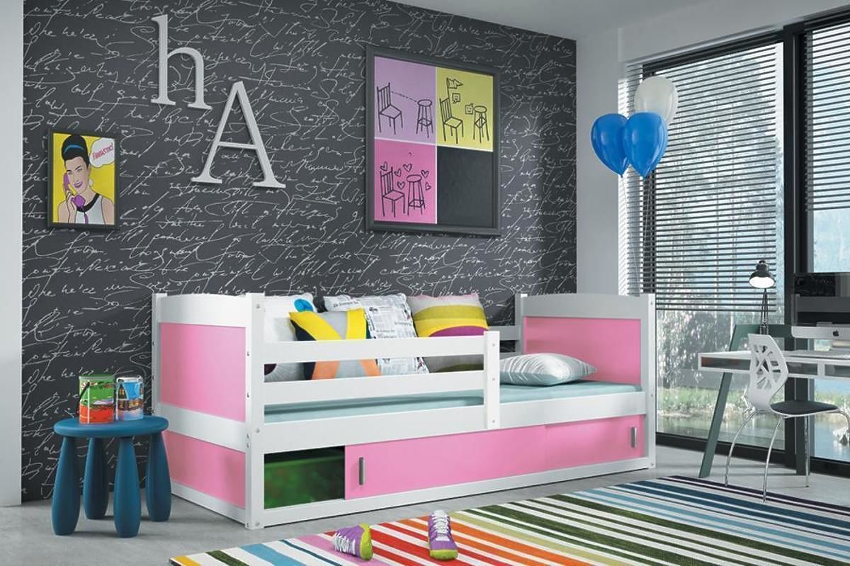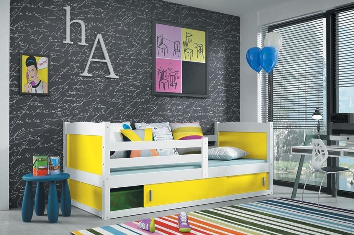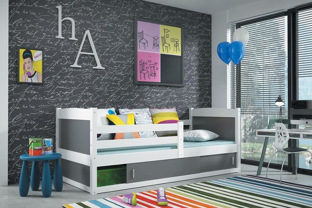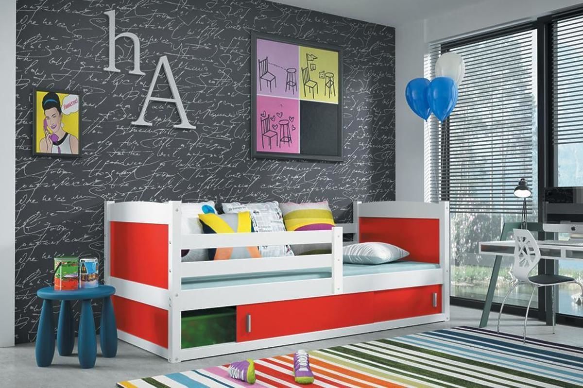 Posteľ ponúkame v dekore bielej v niekoľkých farebných prevedeniach: bielom, svetlo modrom, tmavo modrom, sivom, zelenom, oranžovom, ružovom, červenom, žltom a fialovom.