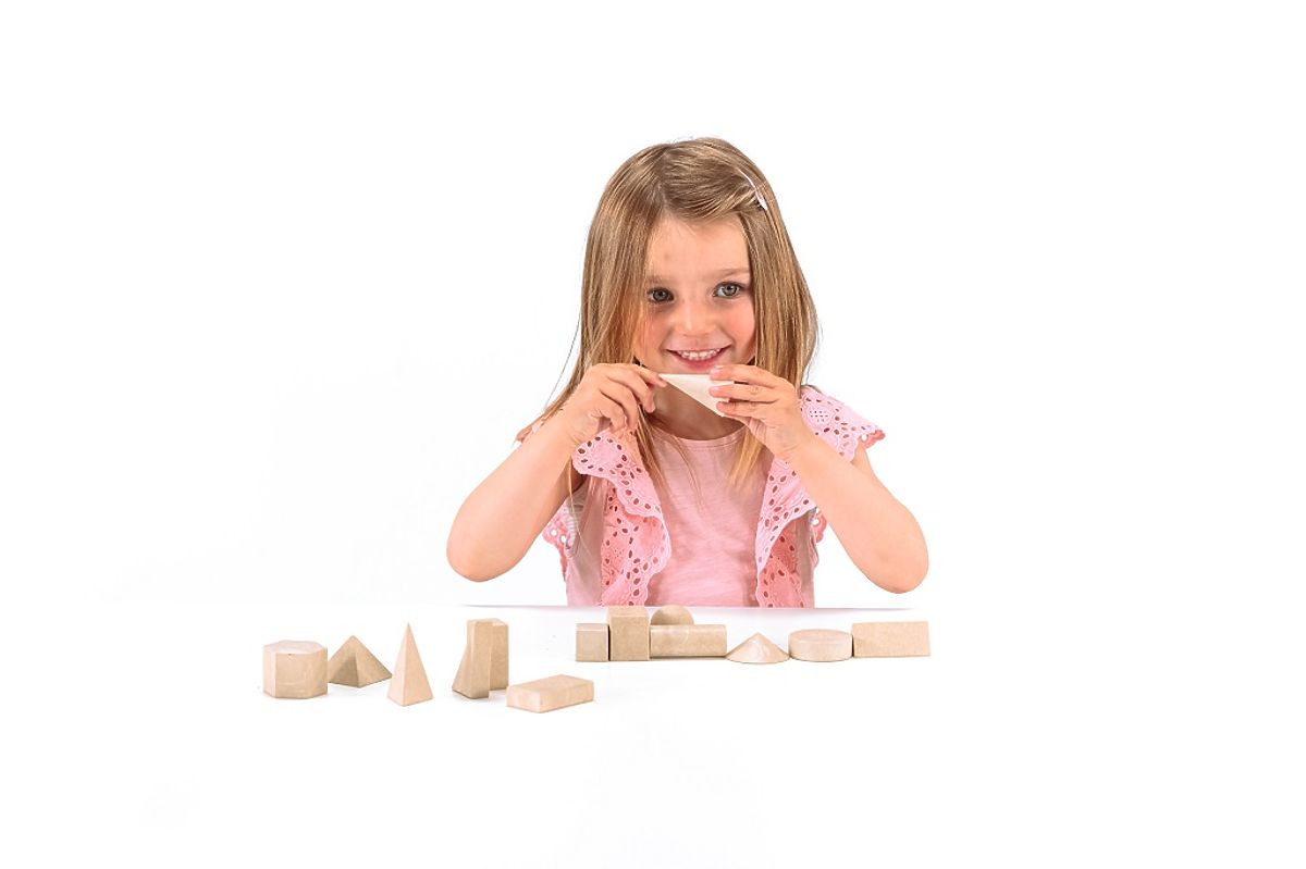 14 rôznych drevených geometrických telies, ktoré slúžia na hranie, ale sú vhodné aj ako učebná pomôcka. Rozpoznáte a pomenujete ich správne všetky? Vďaka týmto kockám získa dieťa pojem o slovách ako plocha, hrana, roh, strana, uhlopriečka, úsečka, pravý uhol či kolmice. Ukážte mu, ako vyzerá kocka, kváder, hranol, valec, ihlan, kužeľ či guľa. Vyrobené zo 100% recyklovaných materiálov, má certifikáciu PEFC a po použití ho možno opakovane recyklovať. Hlavné vlastnosti: obsahuje 14 dielov, vhodné ako učebná pomôcka na rané učenie geometrie, vyrobené v Nemecku