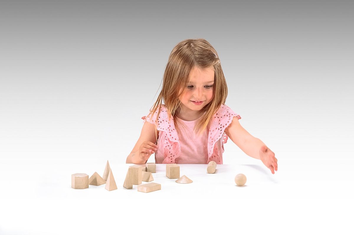Drevená sada 14 geometrických telies pre učenie a hranie. .. viac