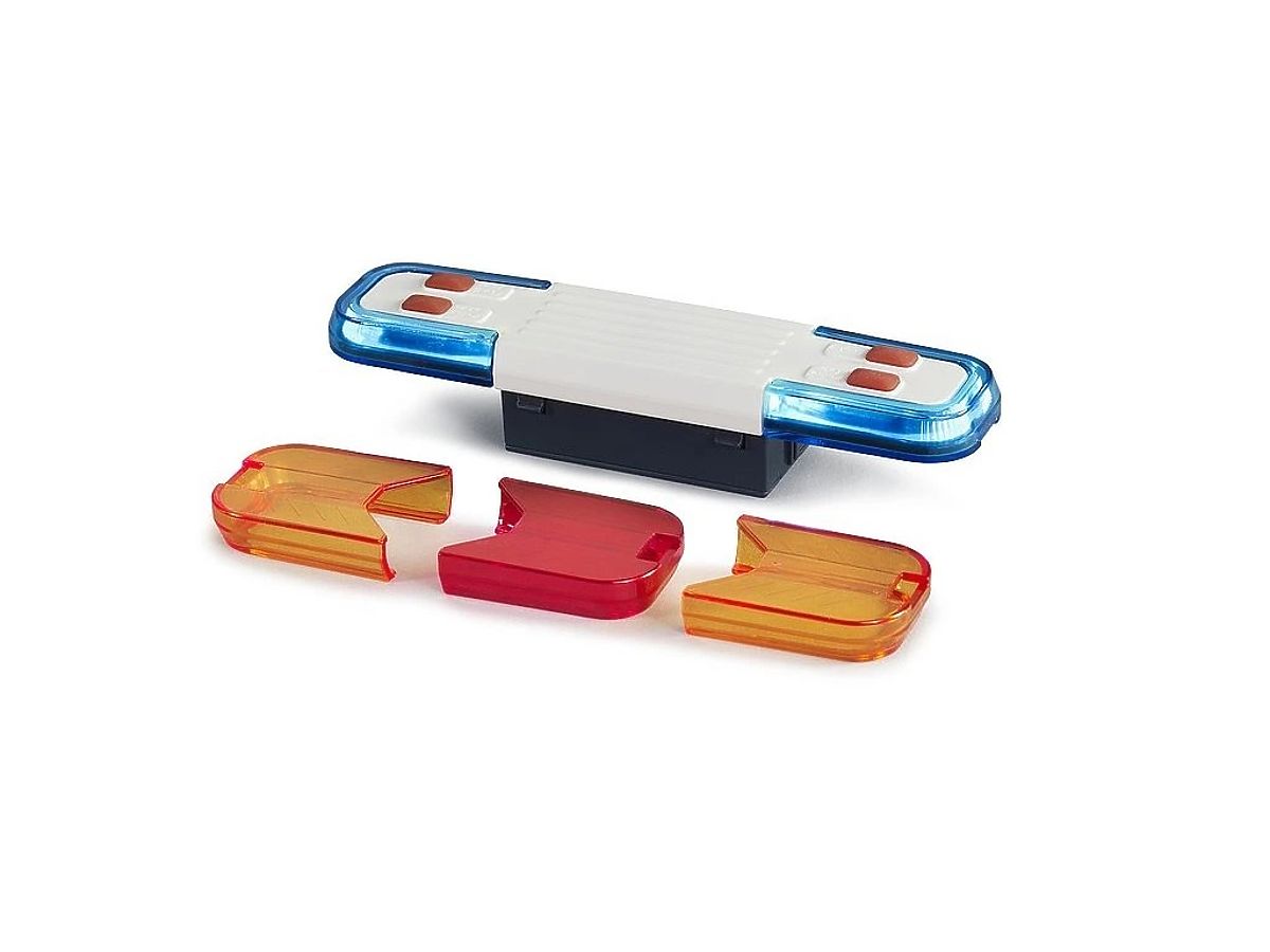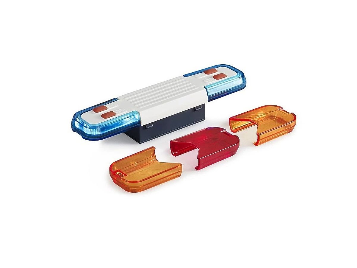 Moderný svetelný a zvukový modul vyniká špičkovým dizajnom a rozširuje funkcie všetkých nákladných vozidiel BRUDER. Štyri rôzne funkčné tlačidlá umožňujú prehrávanie zvukov motora, policajnej sirény, hasičskej sirény a výstražného signálu po dobu približne 20 sekúnd. Krátky výstražný signál je obzvlášť vhodný na použitie v hustej premávke a na križovatkách, kde priťahuje väčšiu pozornosť pri zapnutom výstražnom svetle a zvuku záchranných vozidiel. Svetelná funkcia sa spúšťa súčasne s príslušným zvukom. Modul umožňuje nasadenie dvoch modrých krytov (napr. pre políciu), dvoch oranžových krytov (napr. pre servisné vozidlá) a jedného červeného krytu (napr. pre záchranné služby v USA) v ľubovoľnej kombinácii. Vďaka štandardizovanému BRUDER konektoru je tento modul veľmi univerzálny. Súčasťou balenia je aj adaptér, ktorý umožňuje použitie modulu aj na nákladných vozidlách s otvorom v streche. Hlavné vlastnosti: automatické vypnutie po cca 30 sekundách, rýchle vypnutie opätovným stlačením tlačidla, 4 zvuky – motor, policajná siréna, výstražný policajný signál, hasičská siréna, svetelná funkcia, napájanie 2x AAA batérie (sú súčasťou balenia), vyrobené v Nemecku