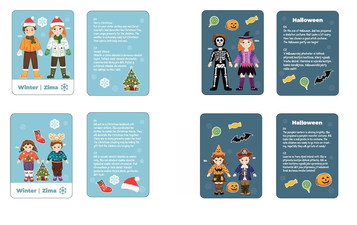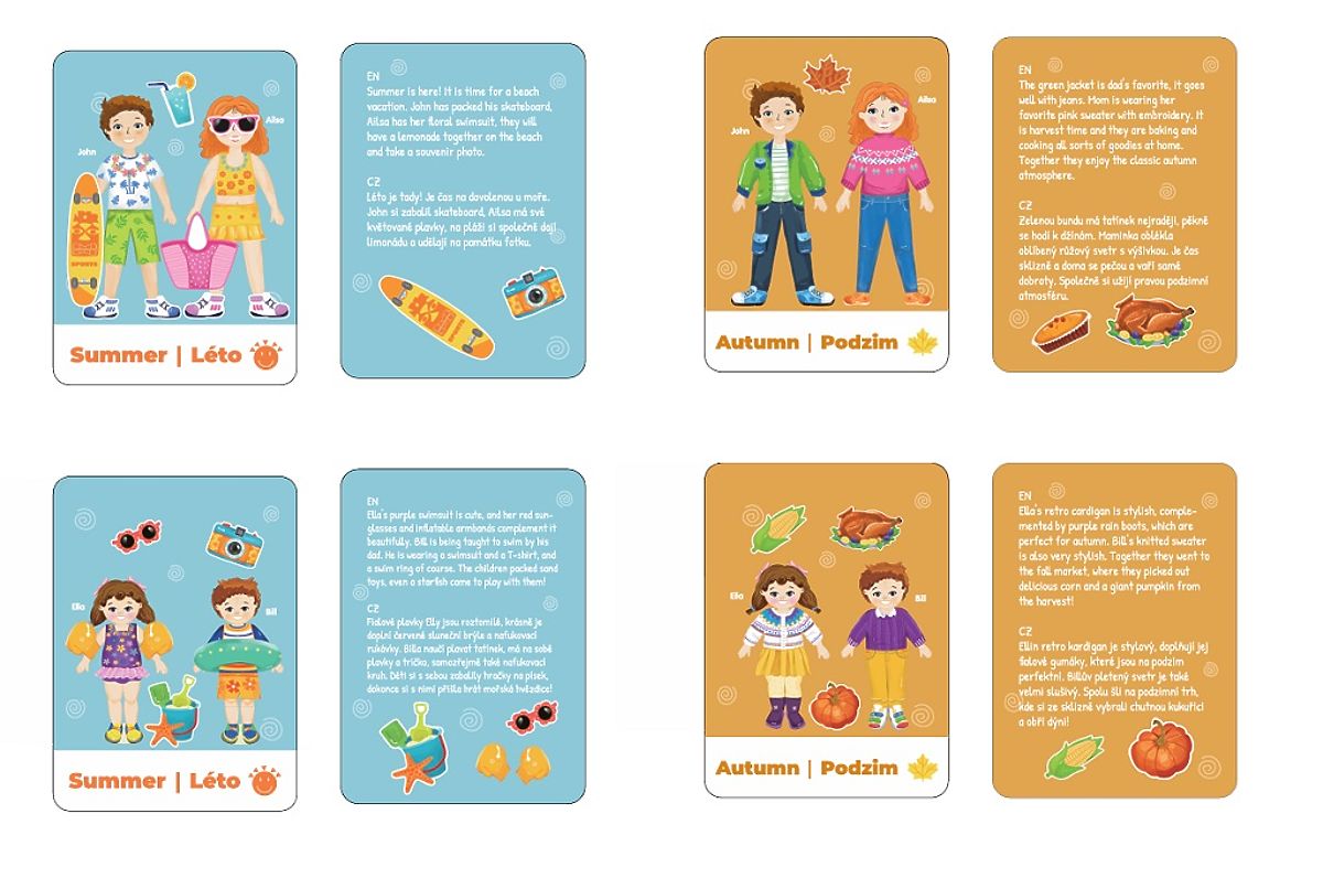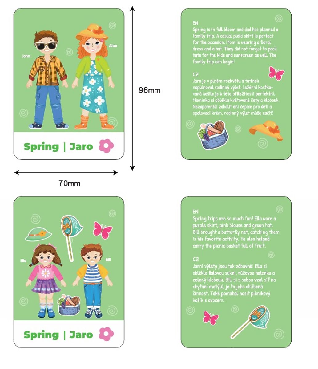Oblečte celú rodinu podľa ročného obdobia, nálady alebo zábavnej úlohy! Magnetická sada „Happy Family“ prináša množstvo kreatívnej zábavy pri navrhovaní oblečenia pre mamičku, otecka, dievčatko aj chlapčeka. Každý člen rodiny má svoje magnetické oblečenie, doplnky a jedinečný štýl – a záleží len na detskej fantázii, ako ich oblečie. Súčasťou sady sú aj tematické kartičky, ktoré deti inšpirujú ku konkrétnym úlohám – napr. oblečenie na leto či jeseň, výlet na pláž, pečenie tekvicového koláča alebo jesenná úroda či zimné radovánky. Deti sa tak hravo učia o ročných obdobiach, rozvíjajú predstavivosť a zároveň si precvičujú jemnú motoriku. Hlavné vlastnosti: drevená magnetická krabička s otočnou tabuľou 4 postavy na obliekanie (mamička, otecko, dcéra, syn) viac než 80 magnetických dielikov oblečenia a doplnkov 8 obojstranných kartičiek s príbehmi v češtine a angličtine (jar, leto atď.) rozvíja jemnú motoriku, fantáziu a poznávanie ročných období pre deti od 3 rokov ideálne na hru doma aj na cestách