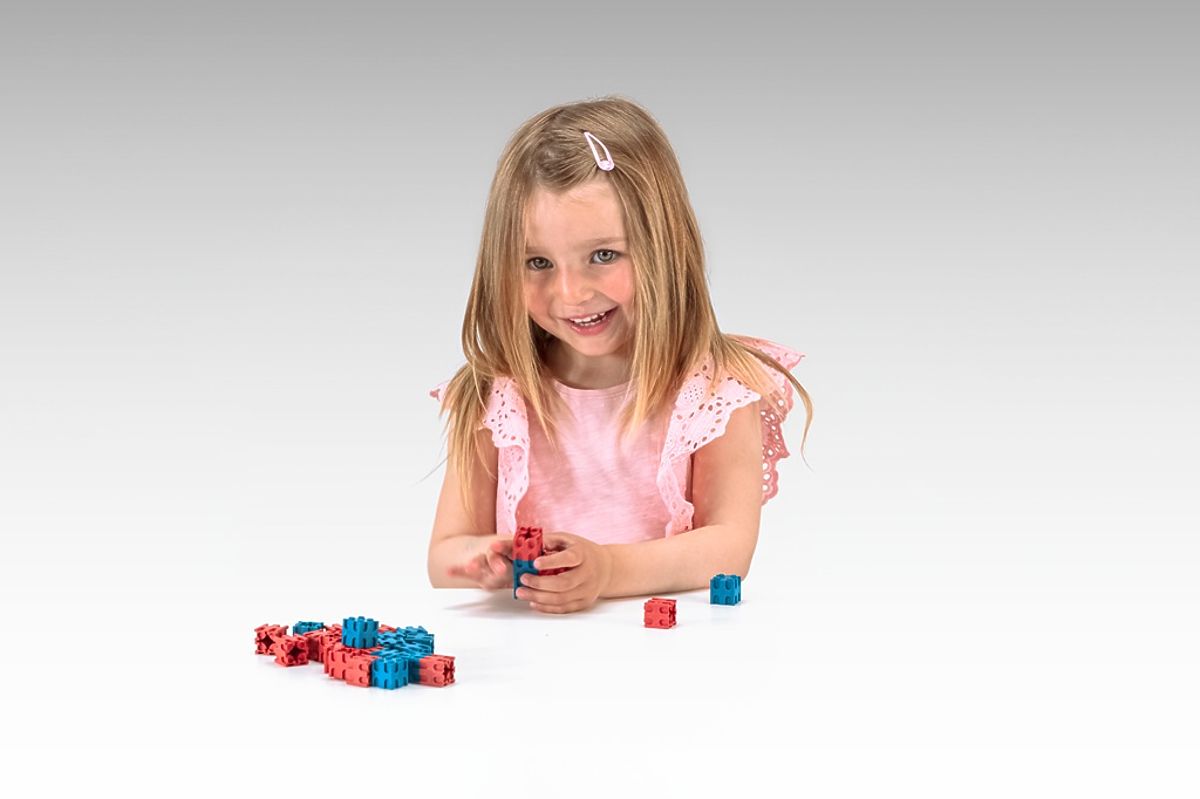 Kocky v červenej a modrej farbe sú univerzálna didaktická pomôcka pre deti od predškolského veku. Vďaka možnosti spájania zo všetkých strán aj s posunom sú ideálne na stavbu priestorových modelov, nácvik jemnej motoriky aj základných početných úkonov. Vďaka ich veľkosti sa s nimi pohodlne manipuluje a ľahko sa používajú aj pri meraní, vážení a porovnávaní. Vyrobené z pevného 100% recyklovaného dreva s certifikáciou PEFC, ktoré je po použití opakovane recyklovateľné. Zabalené v kartónovej krabičke s návodom. Hlavné vlastnosti: 50 modrých a 50 červených kociektrénuje stavbu 3D tvarov a geometrických teliesrozvíja jemnú motoriku pri spájaní kociekpodporuje predstavivosť a tvorivosťučí sčítanie, odčítanie, násobenie a deleniepomáha porovnávať dĺžky a hmotnostirozvíja triedenie a vnímanie farebných vzorovzlepšuje koncentráciu pri práci podľa návodu či predlohyvyrobené zo 100% recyklovaného dreva s certifikáciou PEFCvyrobené v Nemecku