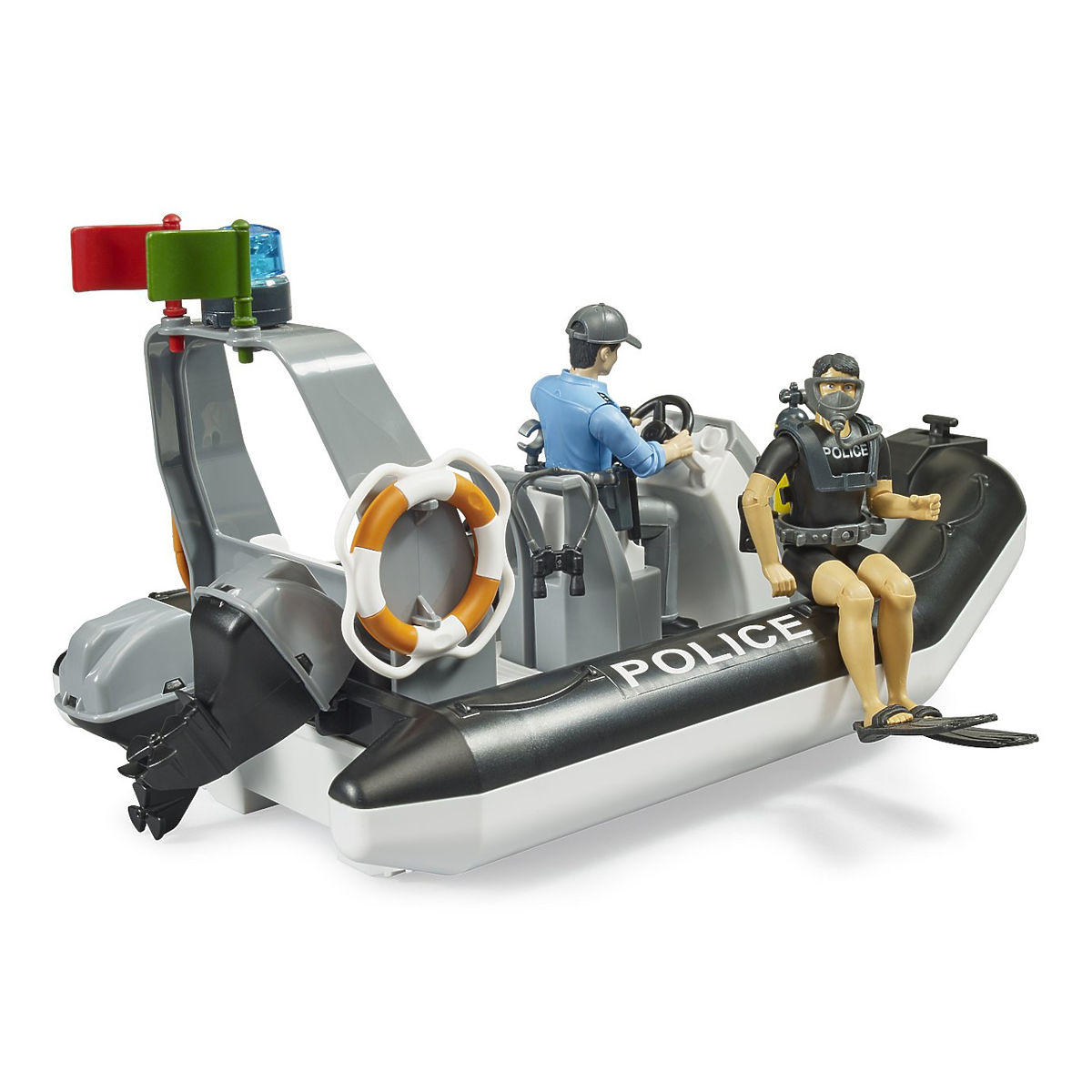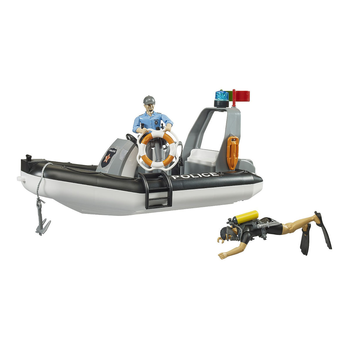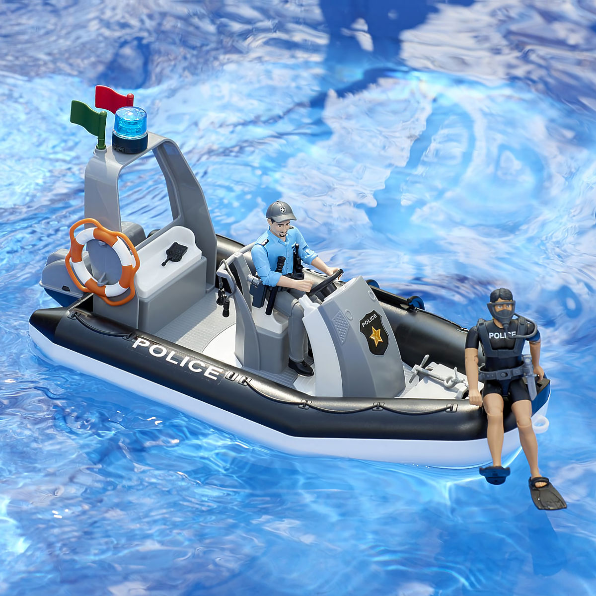 Plávajúci policajný čln s figúrkami policajta a potápača. .. viac