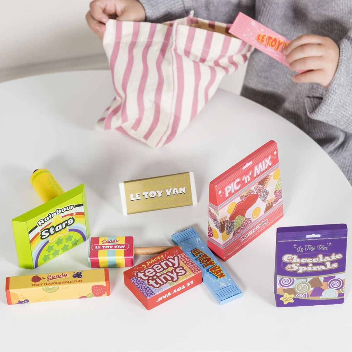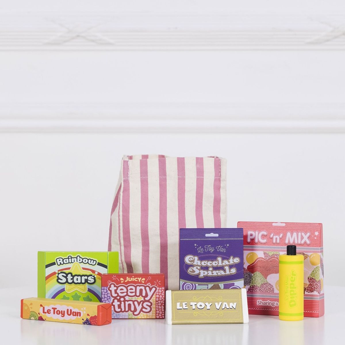 Táto hračka niektorým z vás prinesie poriadnu dávku nostalgie. Pruhované retro vrecko so sladkosťami, to je veľa sladkej zábavy, bez bolesti zubov. Každá sladkosť má unikátnu ilustráciu, na niektorých dokonca nájdete zlatisté detaily. Táto hračka je vyrobená eticky z udržateľného kaučukového dreva a je 100% bez obsahu plastu! Drevené sladkosti deti uvedú do magického sveta predstavivosti. Hračky s účelom Všetky hračky firmy Le Toy Van sú vyrobené s cieľom – aby dlho vydržali. Navrhnuté s láskou skúsenými remeselníkmi za použitia etických praktík a udržateľných materiálov, ktoré sú šetrnejšie k našej planéte. Hlavné vlastnosti: vyrobené eticky z udržateľného dreva testované podľa najprísnejších štandardov maľované netoxickými farbami na báze vody inšpiruje k tvorivej a predstavivej hre pomáha s rozvojom reči a sociálnych zručností podporuje pri ranom vývoji Honeybake kolekcia: Hračky v tejto kolekcii sú vhodné na objavovanie, pomôžu deťom s rozvojom predstavivosti, sociálnych a verbálnych zručností a kognitívnych funkcií. Tradičný dizajn s modernými detailmi deti určite bude baviť. Honeybake je kolekcia Le Toy Van, ktorá získala najviac ocenení, a to za dizajn, kvalitu, bezpečnosť a tiež za vzdelávaciu a hernú hodnotu.