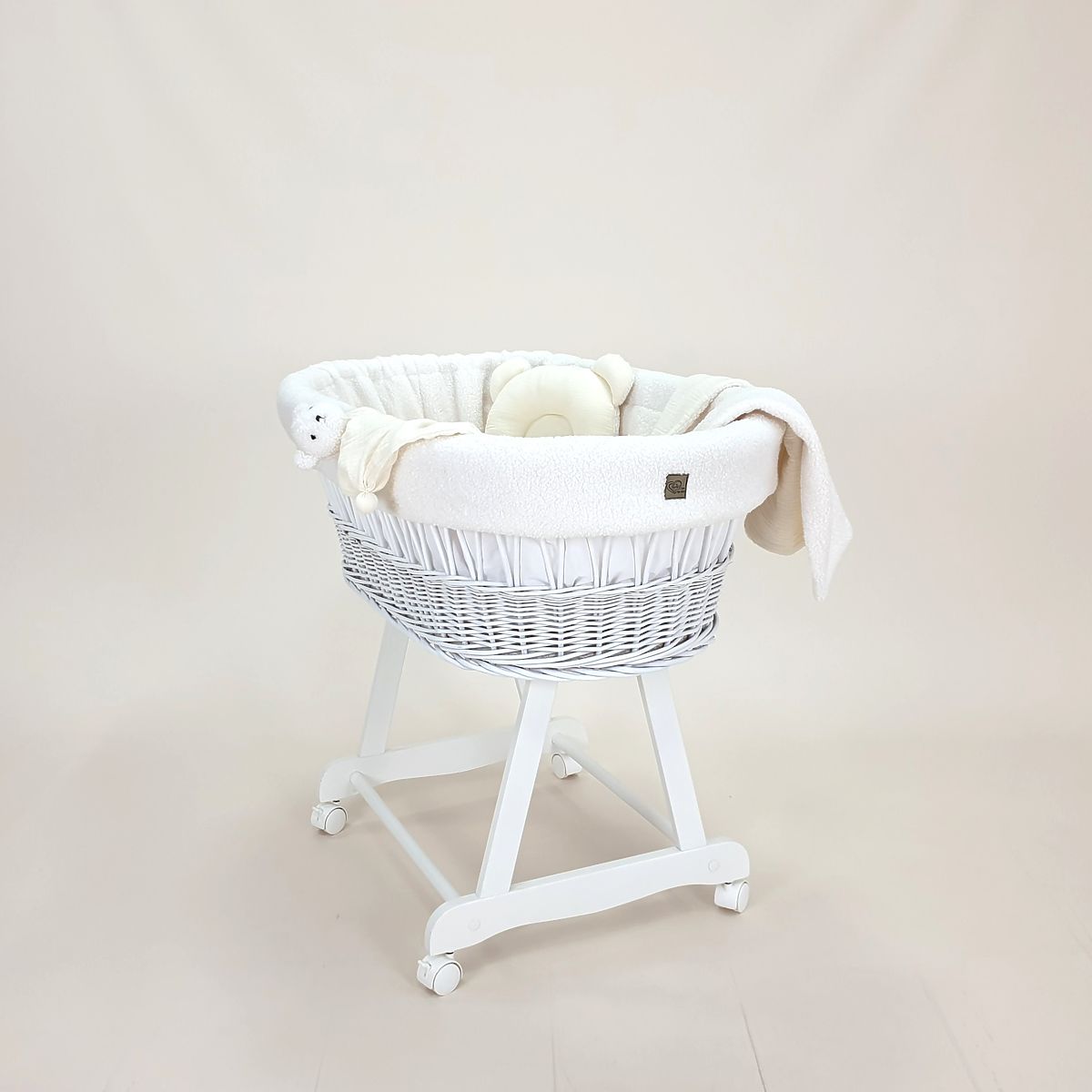 Babynabytek.sk » Detský nábytok / Postieľky / Prútené postieľky / Biela prútená Teddy postieľka pre bábätko - výbava v farbe ecru