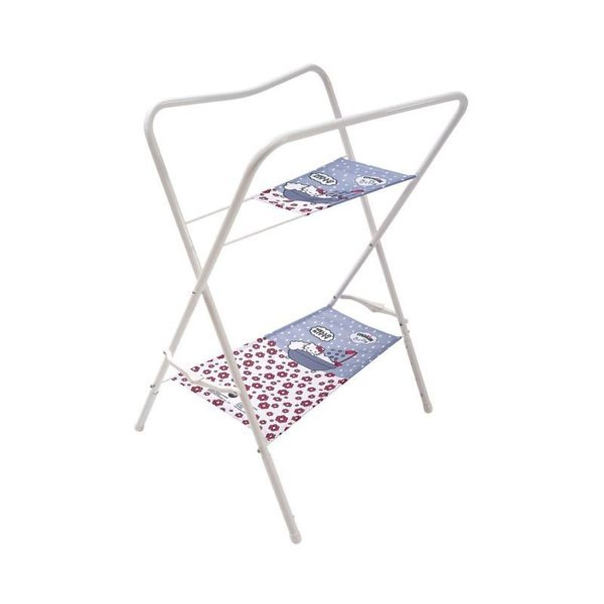 Stojan pod vaničku v bielej farbe s obľúbeným motívom Hello Kitty pomôže spríjemniť každé kúpanie vášho dieťatka. Pomáha zabezpečiť väčšie bezpečie počas kúpania a znižuje záťaž kladenú na chrbticu pre toho, kto bábätko kúpe. Stojan je vybavený dvoma poličkami na uteráky a kúpeľňové doplnky. Horná polička je prispôsobená pre odtok vody z vaničky. Nohy stojana sú zakončené protišmykovými koncovkami. Vďaka možnosti zloženia nezaberá stojan veľa miesta.