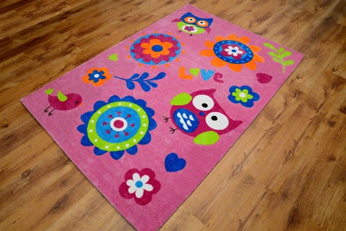 Jedinečný ružový detský koberec s obľúbeným motívom sovičiek ozvláštni každú detskú izbu! Sovičky zaujmú na prvý pohľad svojimi pestrými farbami, koberec je tiež nádherne mäkký na dotyk. Pomáha rozvíjať detskú predstavivosť a kreativitu počas zábavy aj učenia.