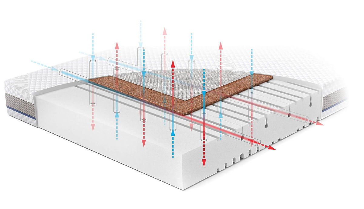 Prírodný kokosVrstva z prírodných kokosových vlákien je jedným z prvkov matraca Natura. Tieto vlákna sa vyznačujú dobrými ventilačnými vlastnosťami a poskytujú tvrdý povrch na spanie. Ventilačné kanáliky umiestnené pod kokosovou rohožou posilňujú prúdenie vzduchu.