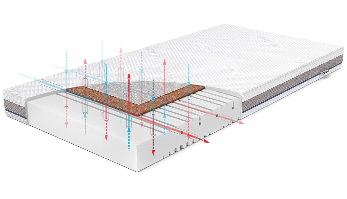Poťahová sieť a vertikálne a horizontálne kanály sú plne integrované - vďaka tomu vzniká rozšírená sieť a matrac dýcha.