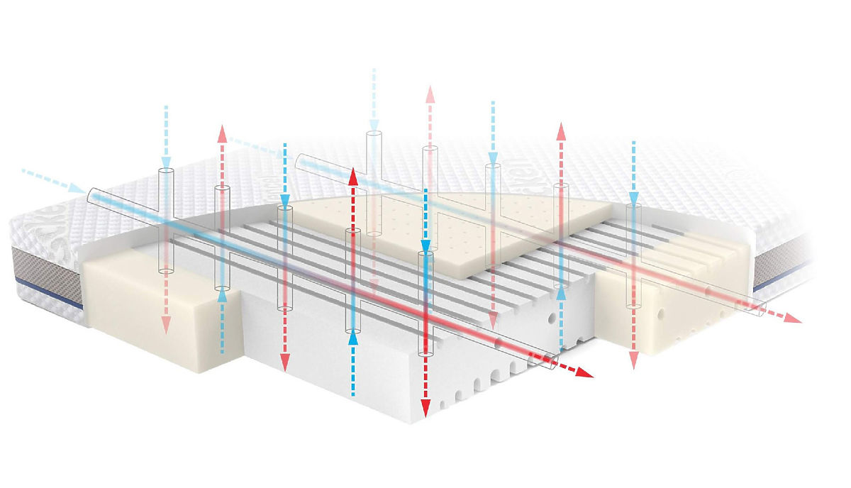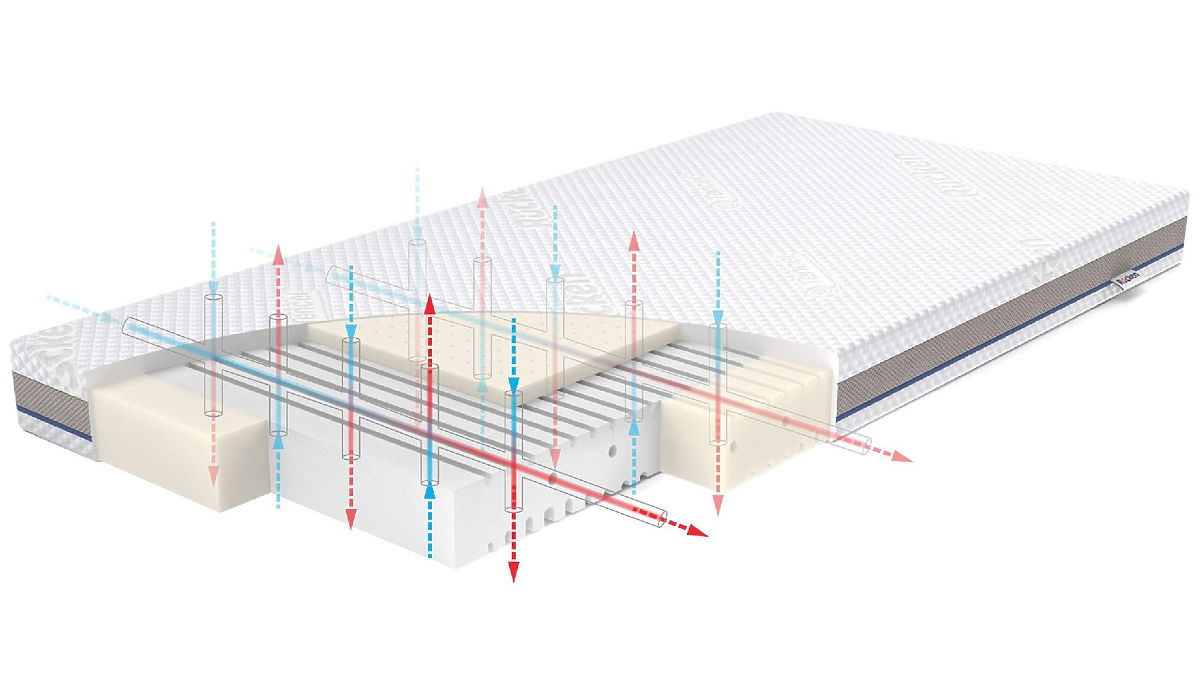Poťahová sieťka a vertikálne a horizontálne kanály sú plne integrované - vďaka tomu vzniká rozšírená sieť a matrac dýcha.