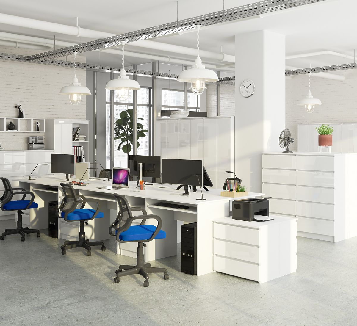 Nábytok je vyrobený z laminovanej dosky o hrúbke 16 milimetrov, ktorá je odolná a odolná proti oderu. Viditeľné hrany stola sú olepené ABS hranou, ktorá sa tiež vyznačuje vysokou odolnosťou proti poškodeniu. Polomatný korpus skvele ladí s akrylovými čelami vo vysokom lesku. Ak hľadáte riešenie s veľkou pracovnou plochou a praktickými zásuvkami, odporúčame zoznámiť sa s našou ponukou. Zaručujeme najvyššiu kvalitu, funkčnosť, moderný dizajn a priaznivú cenu. K písaciemu stolu môžete prispôsobiť ďalší kancelársky nábytok dostupný v našom internetovom obchode. Dúfame, že splní očakávania aj tých najnáročnejších zákazníkov. Stôl je ľahko čistiteľný a jeho jednoduchá a zároveň elegantná forma činí nábytok nadčasovým a univerzálnym. Pozývame vás k nákupu.