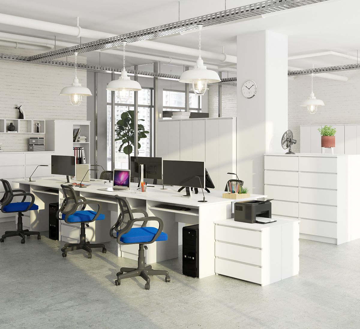 Biely voľne stojaci stôl je moderne navrhnutý nábytok, ktorý sa dokonale hodí do súčasných aranžérskych štandardov. Zaujme svojou jednoduchosťou a eleganciou, a to v módnej bielej farbe. Stôl obsahuje tri priestranné zásuvky, otvorenú policu, vysúvaciu policu na klávesnicu a širokú (135 centimetrov) dosku. Voľne stojaci stôl CLP sa skvele hodí ako do kancelárie, tak do domácej pracovne. Táto ponuka určite splní očakávania tých, pre ktorých je pracovná doska najdôležitejšia. Jej hĺbka je až 60 centimetrov, čo umožňuje pohodlné používanie počítača a ďalších kancelárskych potrieb. Produkt je tiež obľúbený ako herný stôl, kde je veľmi dôležitý priestor a pohodlie používateľa počas dlhého hrania.