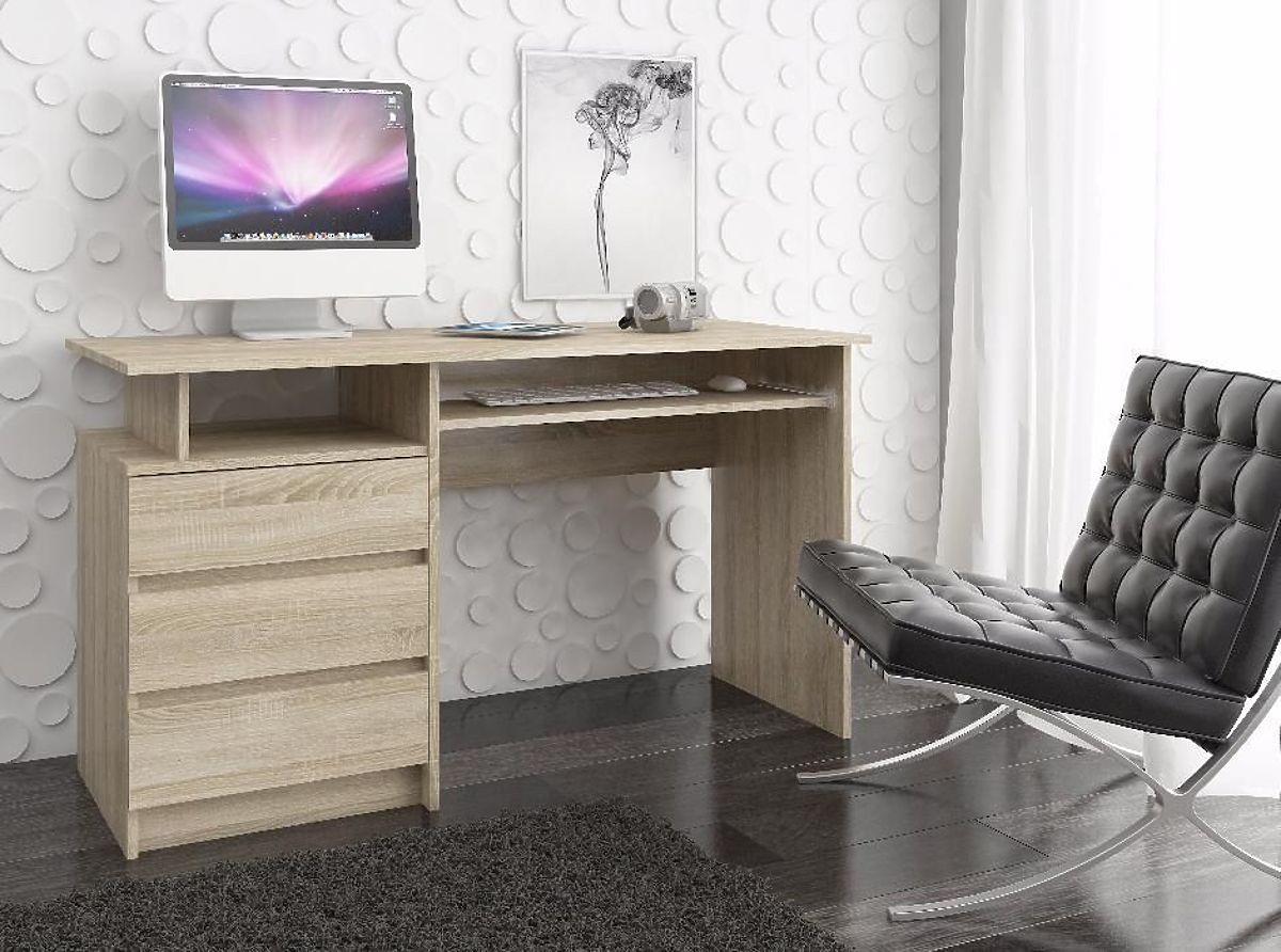 Dub sonoma je farba, ktorá sa už dlhší čas teší veľkej obľube. Skvele sa hodí do každého interiéru, dobre sa kombinuje s doplnkami v rôznych farbách a ľahko sa čistí. Pozornosť si zaslúži písací stôl, ktorý bol navrhnutý práve v tomto univerzálnom odtieni. Produkt bol vytvorený s ohľadom na zariadenie kancelárie, študentskej izby alebo domácej pracovne - každého priestoru, kde sa nachádza počítač. Voľne stojaci písací stôl CLP vo svetlej farbe určite príjemne prekvapí vysokou kvalitou a mimoriadne precíznym spracovaním. Produkt sa vyznačuje pevnou konštrukciou, vďaka čomu je veľmi odolný. Zásuvky, ktorými je nábytok vybavený, sú priestranné, takže pojmú mnoho kancelárskych potrieb nevyhnutných pri práci na počítači. Rozmery nábytku sú 135 cm x 77 cm x 60 cm.
