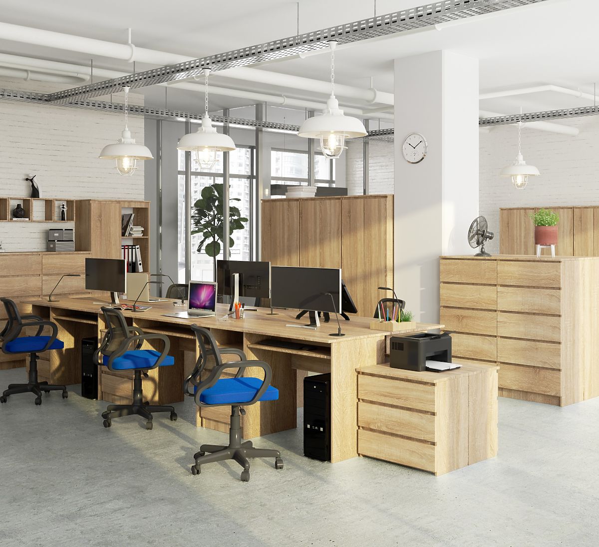 Písací stôl CLP v svetlom odtieni dubu sonoma s priestrannými zásuvkami. .. viac
