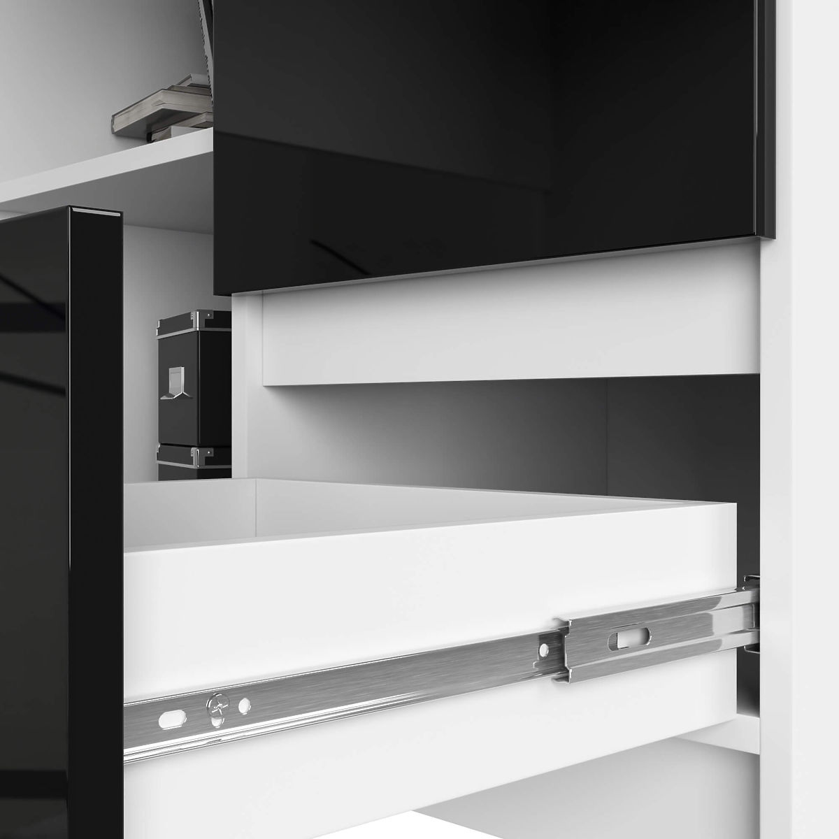 - Zásuvky sa pohybujú na kovových valčekových pojazdoch