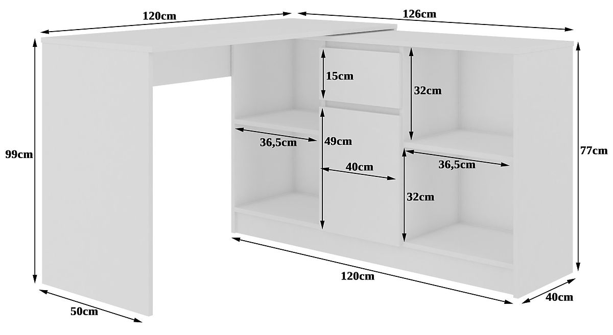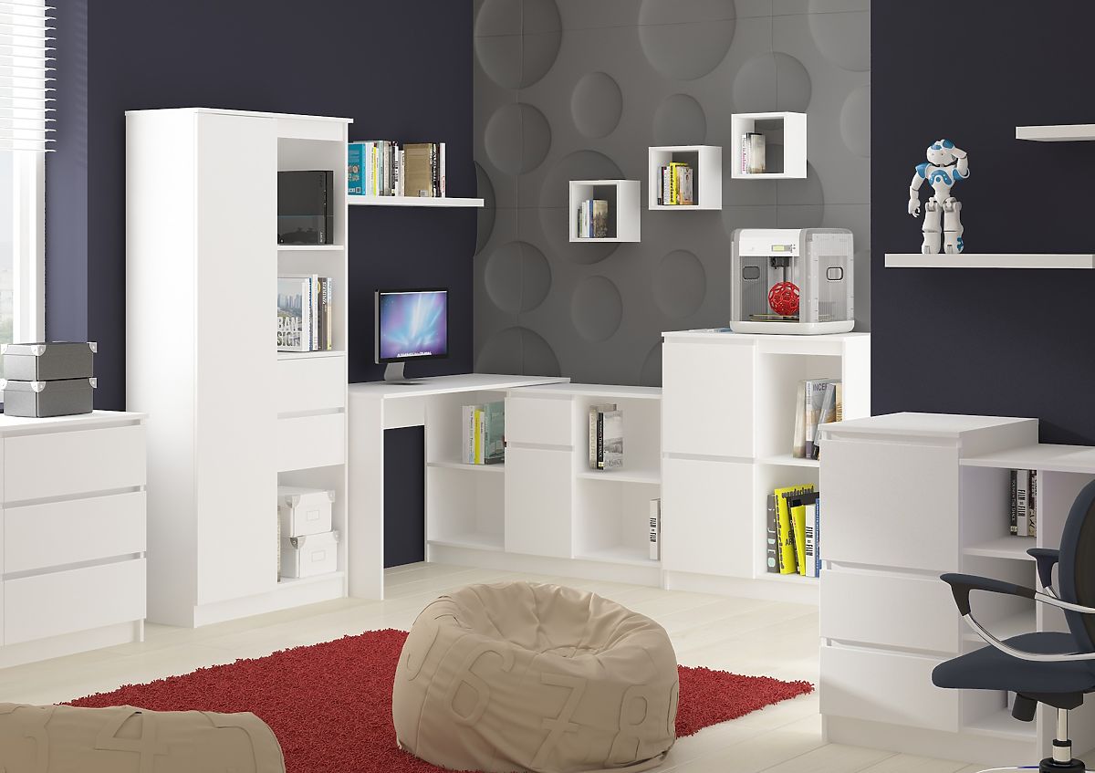 Rohový písací stôl s komodou je zaujímavou a veľmi modernou ponukou vytvorenou pre osoby, ktoré majú za úlohu využiť malý kancelársky priestor. Kombinácia písacieho stola a komody je riešenie charakterizované funkčnosťou a zaujímavým dizajnom. Módna biela farba sa skvele hodí do každého priestoru, pridáva teplo, čistotu a útulnosť aranžovanému miestu.
