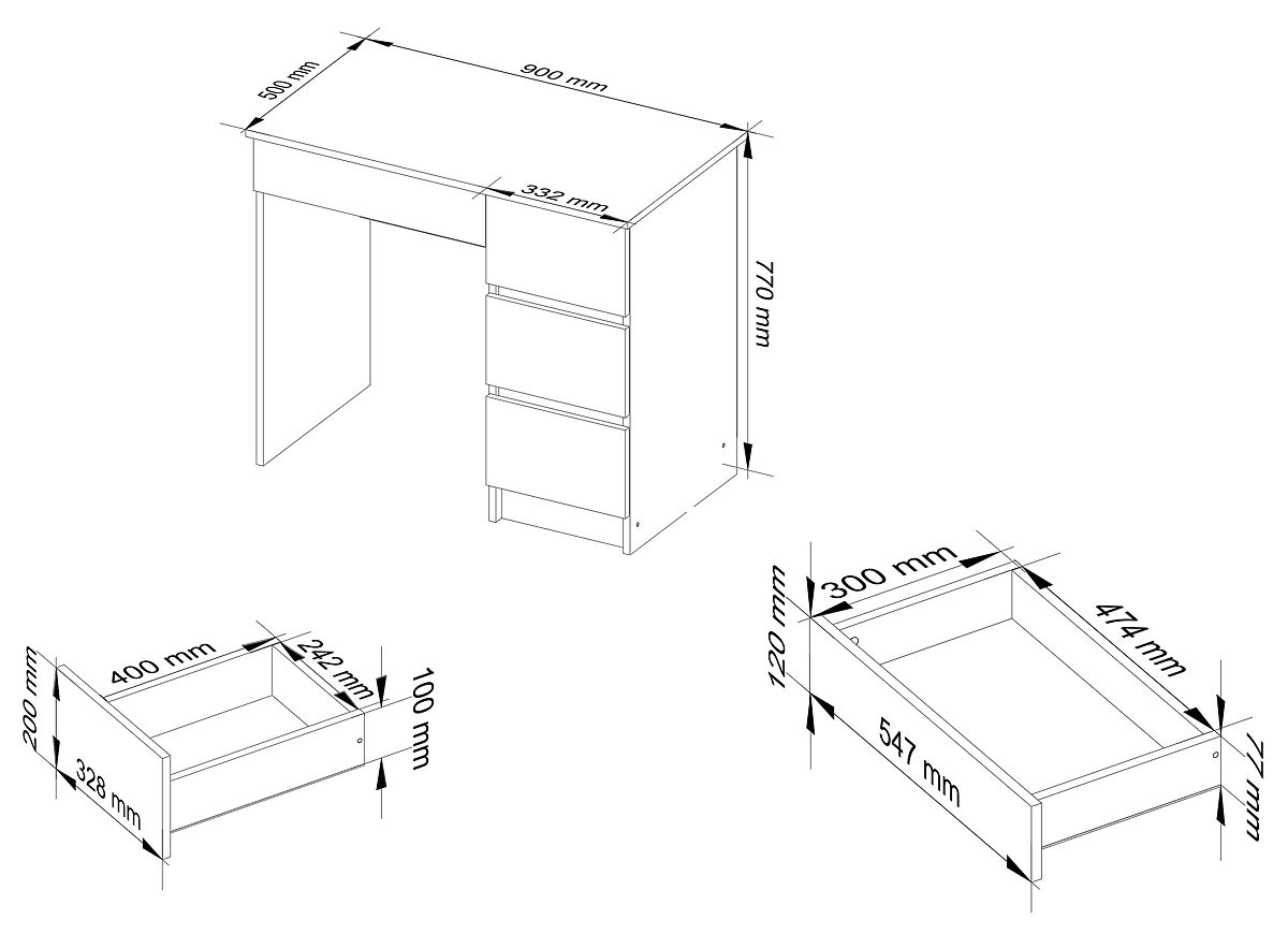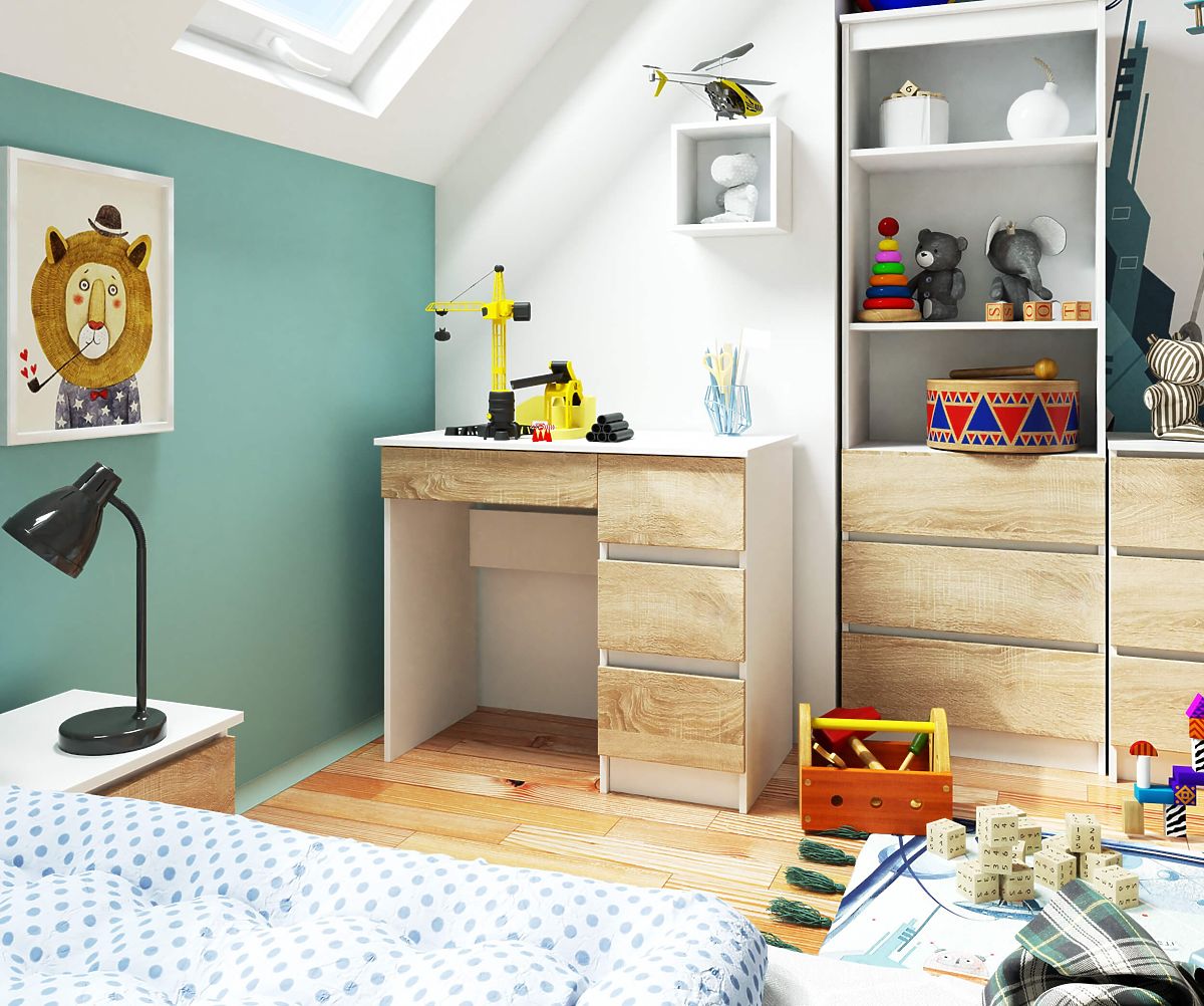 Babynabytek.sk » Detský nábytok / Stoly / Písacie stoly / POČÍTAČOVÝ STÔL A-7 90 cm PRAVÝ PK BIELY / SONOMA
