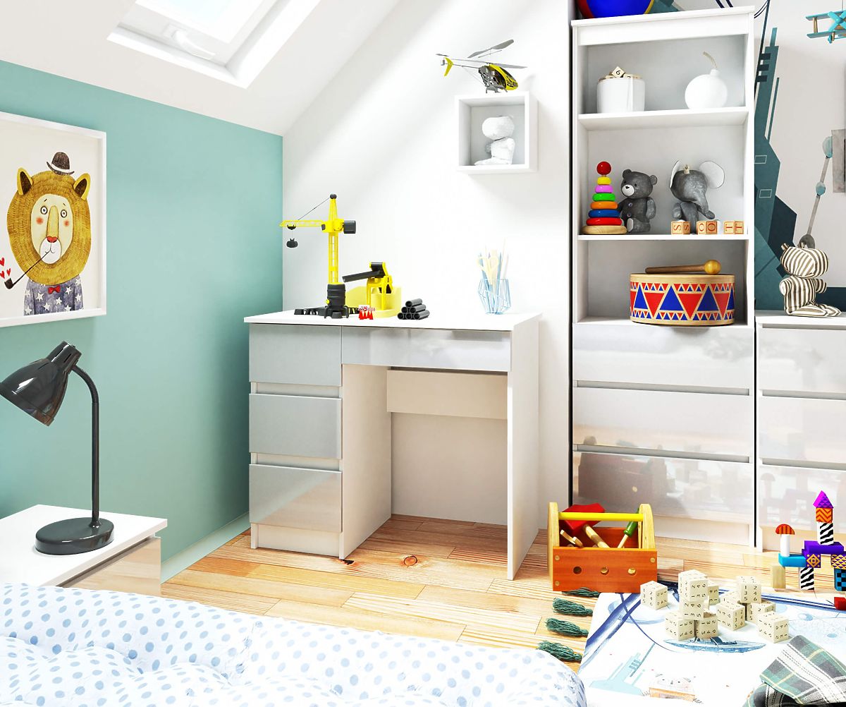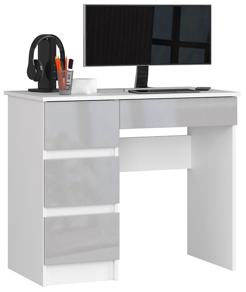 Správne zvolený písací stôl je kľúčom k efektívnemu a pohodlnému učeniu a práci. Pre tieto úlohy sa rozhodne hodí počítačový stôl A-7! 3 priestranné zásuvky s hĺbkou 38,5 cm umiestnené na ľavej strane sú skvelé ako úložný priestor na poznámky alebo písacie potreby, zatiaľ čo štvrtá výsuvná pod doskou je ideálna na umiestnenie ďalšieho vybavenia. Kombinácia farieb bielej a metalickej umožňuje, aby počítačový stôl mohol byť umiestnený ako v kancelárii, tak aj v farebnej detskej alebo mládežníckej izbe, kde bude tvoriť jemný doplnok interiéru.