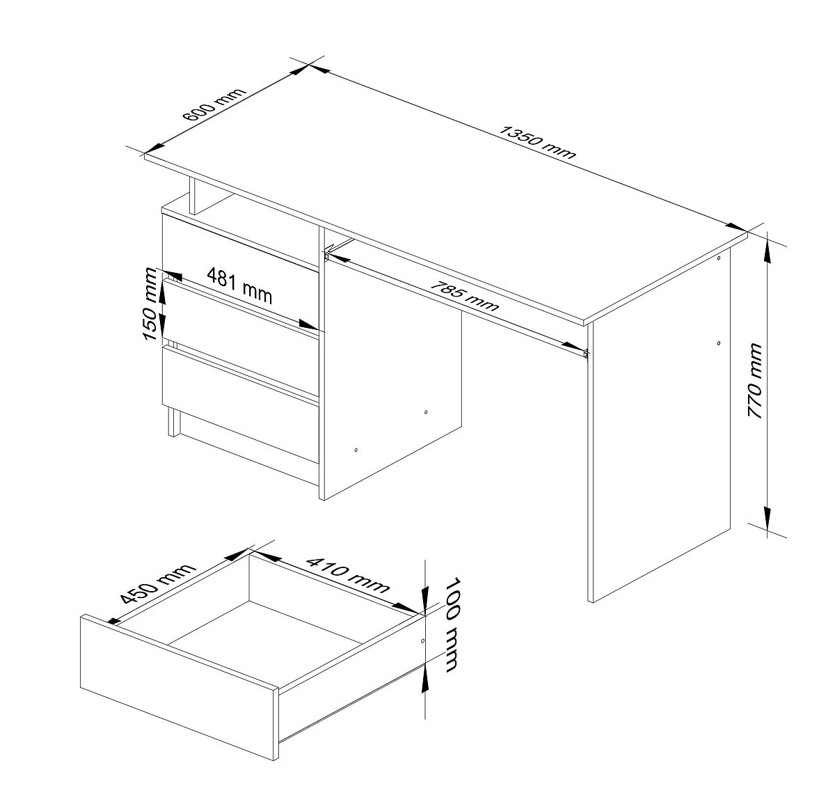 - Písací stôl vyrobený z laminovanej dosky odolnej proti oderu