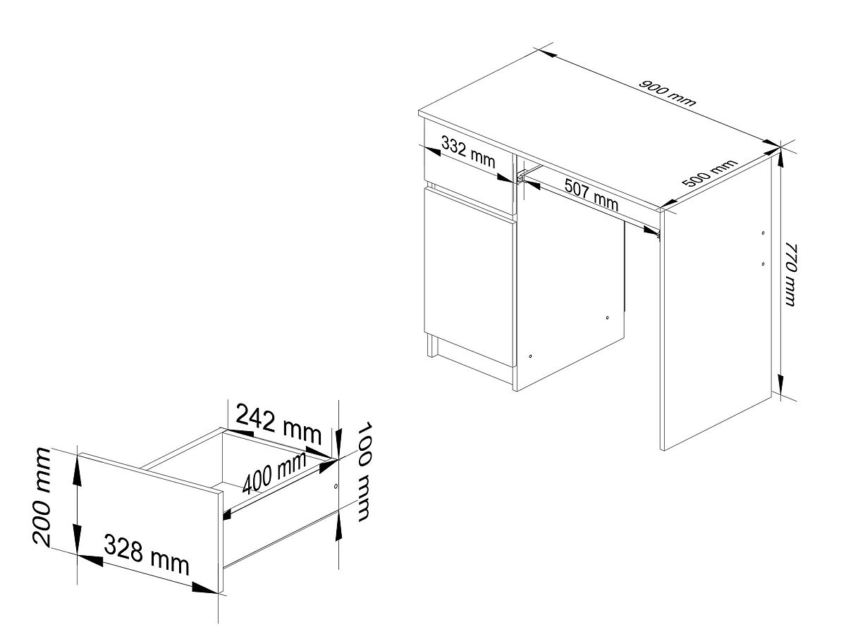 Počítačový stôl PIKSEL v farbách biela a čierna má veľmi moderný štýl. Jeho lesklé čelné plochy zaručujú, že vynikne v každom interiéri. Perfektne sa hodí aj ako školský alebo hotelový stôl. Pohodlie pri používaní zaisťuje dobre navrhnutá konštrukcia: výsuvná polica na klávesnicu, praktická bočná zásuvka a skrinka s policou, kde môžu voľne stáť šanóny a knihy. Laminovaná doska, z ktorej je stôl vyrobený, je odolná proti mechanickému poškodeniu a zároveň príjemná na dotyk a ľahko sa udržiava. Hladký povrch čiernych čelných plôch dodáva stolu elegantný charakter.