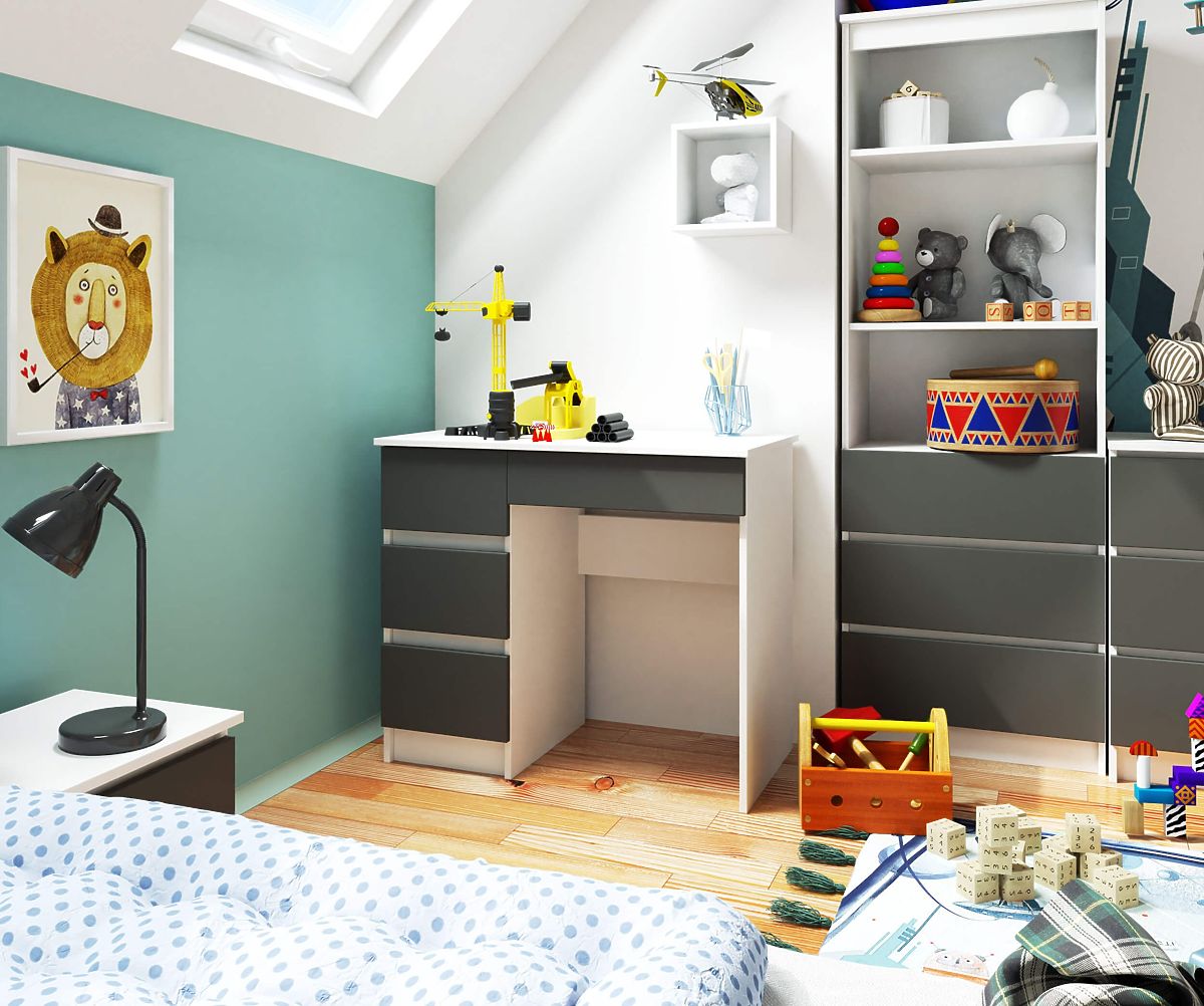 Prečo si vybrať práve písací stôl A-7 v bielej a grafitovo šedej farbe? Tu sú jeho výhody: