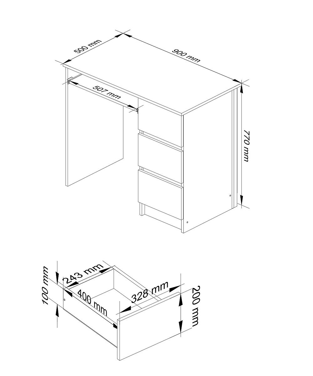 Písací stôl A-6 s dĺžkou 90 cm, pri ktorom sú zásuvky umiestnené na pravej strane, je určený na samostatnú montáž. Táto skutočnosť by nemala predstavovať problém, pretože balenie obsahuje jednoduchý návod, ktorý umožňuje ľahké zostavenie nábytku.