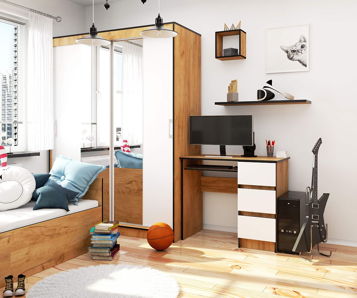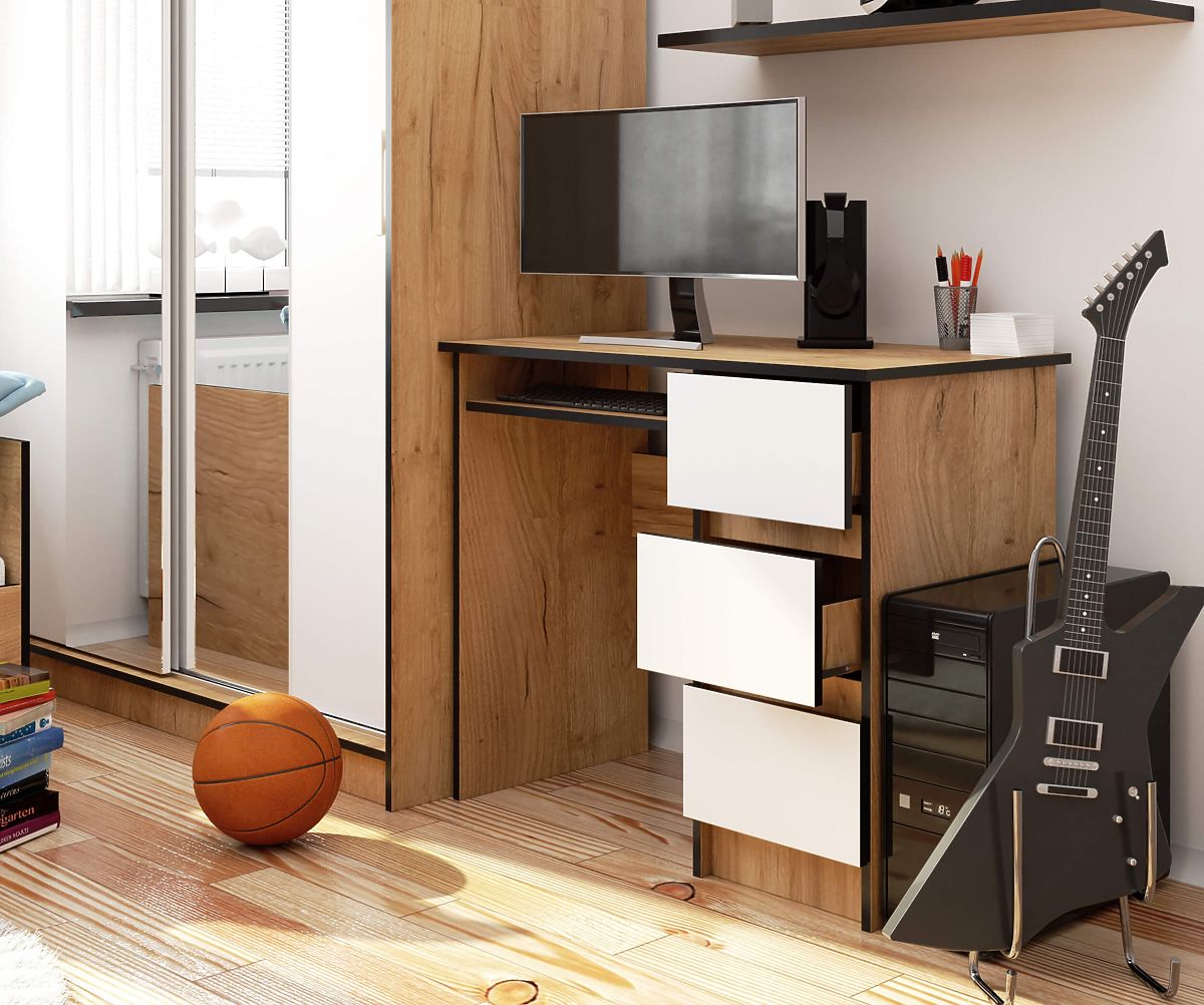 Písací stôl A-6 s dĺžkou 90 cm v odtieni dub craft s bielymi čelami sa vďaka svojmu univerzálnemu a nadčasovému vzhľadu skvele hodí do klasického aj moderného interiéru detskej alebo mládežníckej izby. Môže byť tiež úspešne využitý ako súčasť vybavenia domácej kancelárie. Všetko závisí od individuálnych potrieb a preferencií užívateľa. Vďaka trom praktickým zásuvkám získate ďalší úložný priestor pre rôzne veci, ktoré chcete mať po ruke.