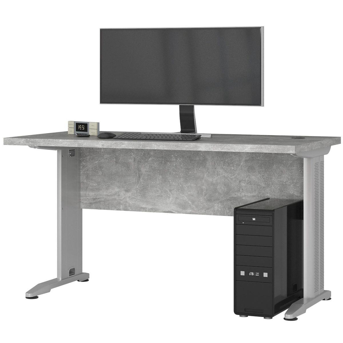 Voľne stojaci stôl BM-135 v betónovej farbe je ideálnym riešením pre počítačové pracovisko v každom dome alebo kancelárii. Nábytok je vyrobený z laminovanej dosky s hrúbkou 32 milimetrov, ktorá je odolná a odolná proti oderu. Viditeľné hrany stola sú opatrené ABS hranou, ktorá sa tiež vyznačuje vysokou odolnosťou proti poškodeniu. Matná doska a zadná časť skvele ladia s kovovými nohami. Ak hľadáte návrh s veľkou pracovnou plochou, odporúčame preskúmať našu ponuku. Zaručujeme najvyššiu kvalitu, funkčnosť, moderný dizajn a priaznivú cenu. K stolu môžete prispôsobiť ďalší kancelársky nábytok dostupný v našom internetovom obchode. Dúfame, že splní očakávania aj tých najnáročnejších zákazníkov. Stôl je ľahko čistiteľný a jeho jednoduchá a zároveň elegantná forma robí nábytok nadčasovým a univerzálnym.
