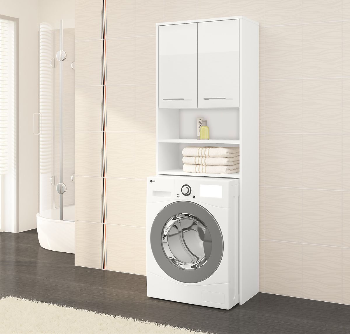 Priestranná skrinka nad práčku s bielym leskom a výškou 180 cm. .. viac