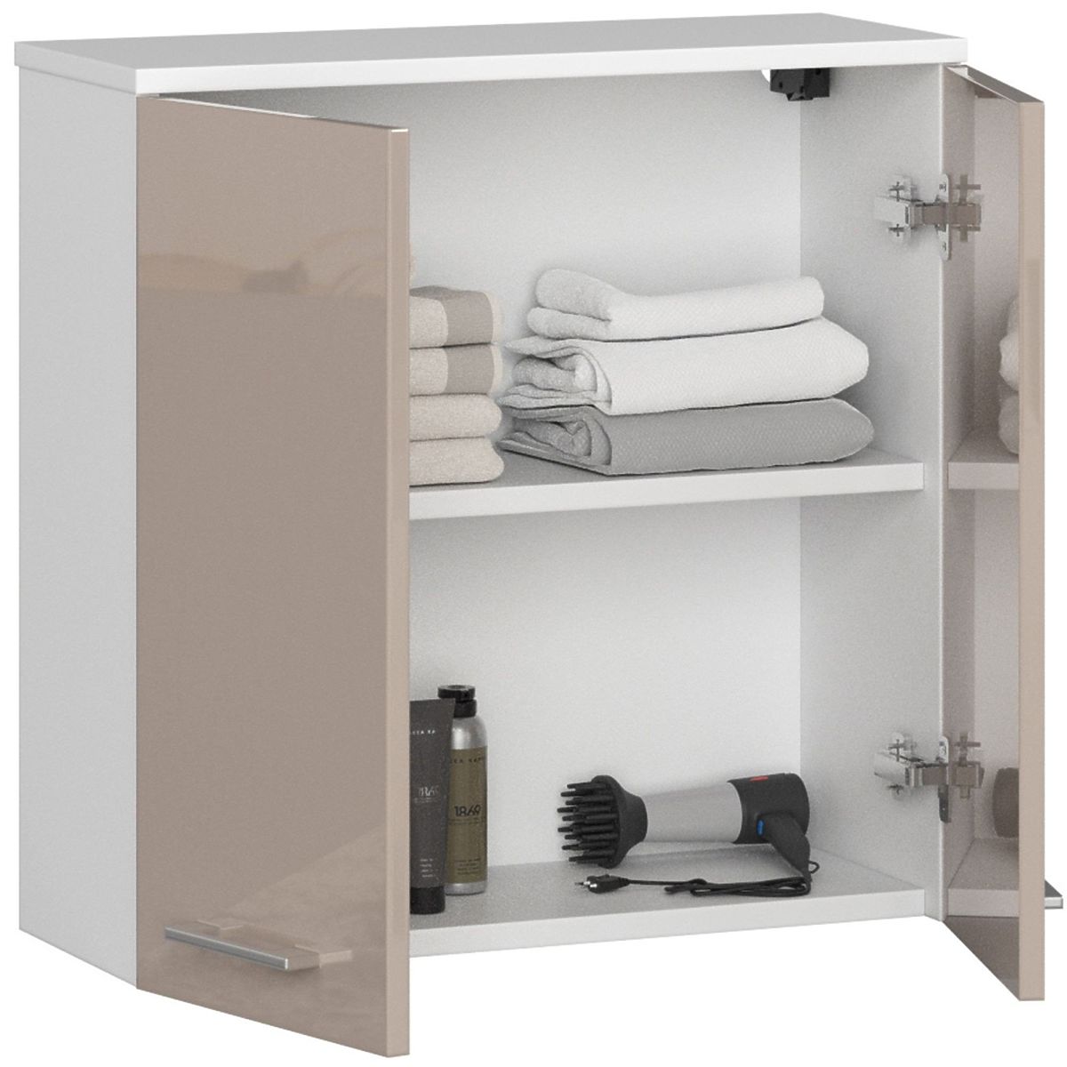 Závesná kúpeľňová skrinka s lesklým cappuccino čelom. .. viac