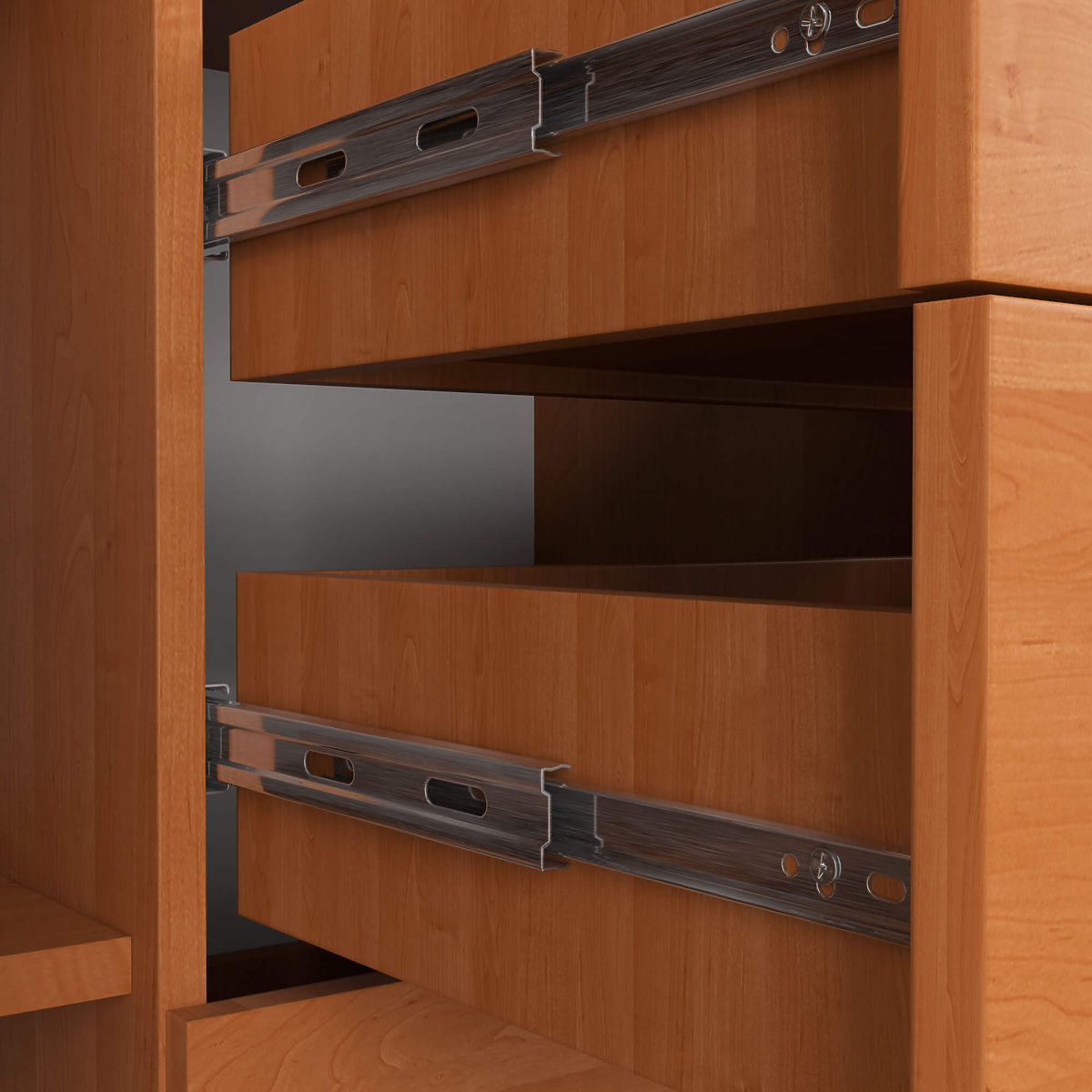 - Zásuvky sa pohybujú na kovových guľôčkových pojazdoch
