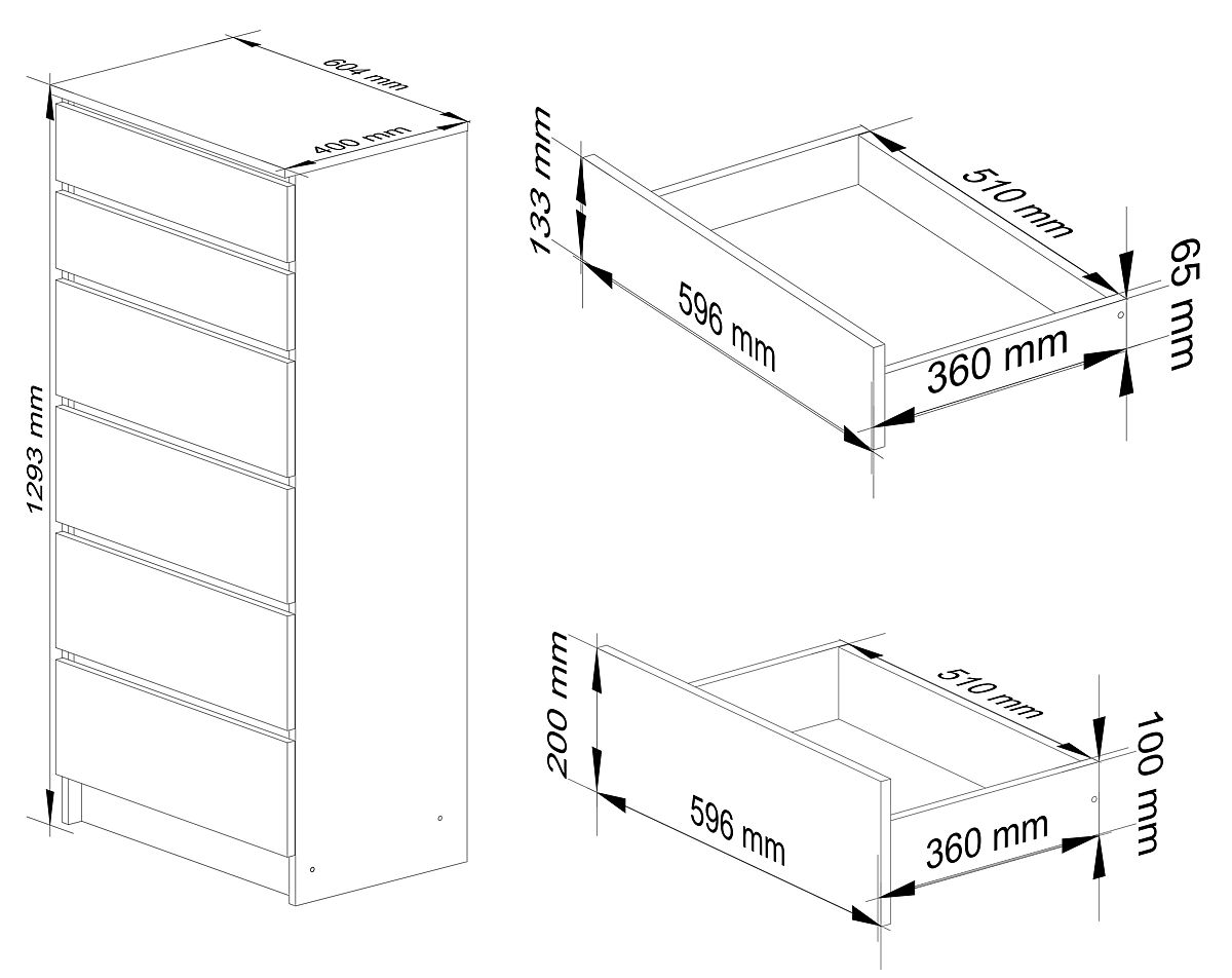Hĺbka - 40cm- Komoda vyrobená z laminovanej dosky odolnej proti oderu