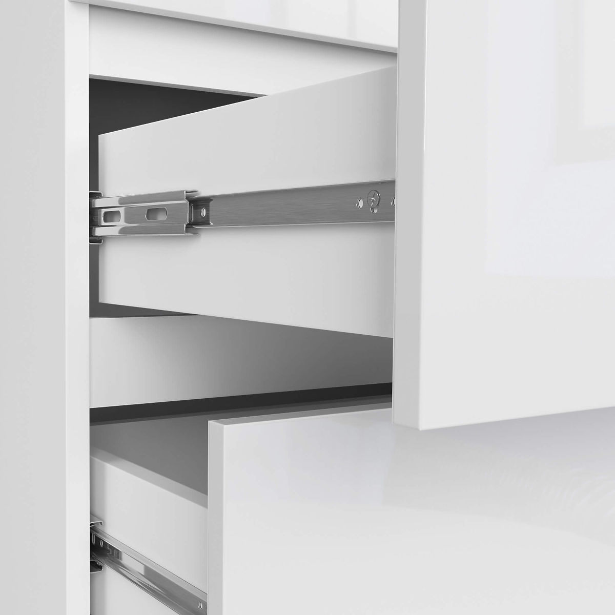 - Zásuvky sa pohybujú na kovových guľôčkových pojazdoch
