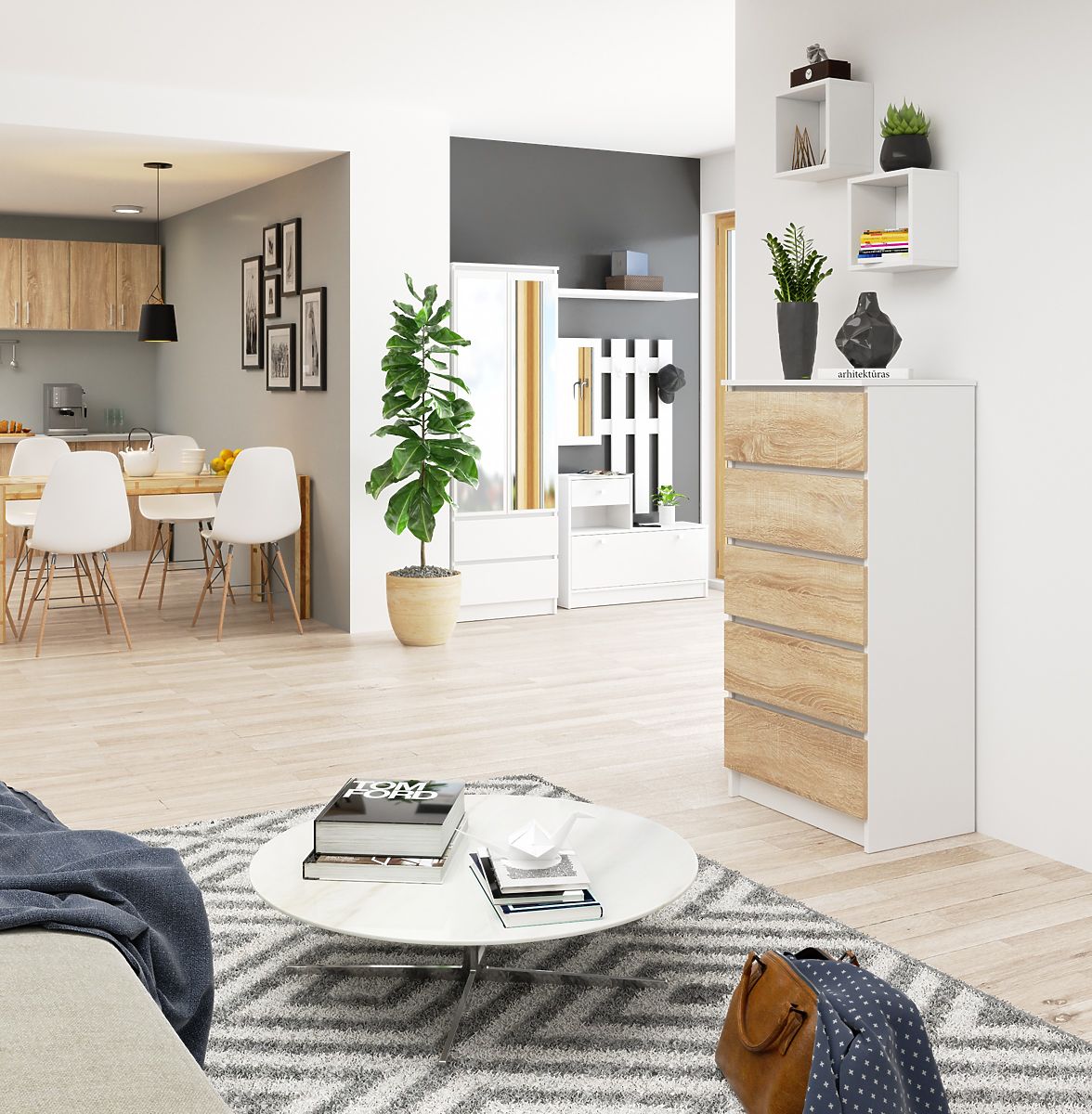 Komoda K60 s 5 zásuvkami v bielej a dub Sonoma farbe. .. viac