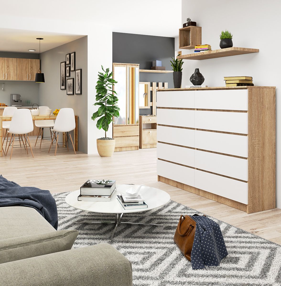 Komoda s 10 zásuvkami v kombinácii dub sonoma a biela. .. viac