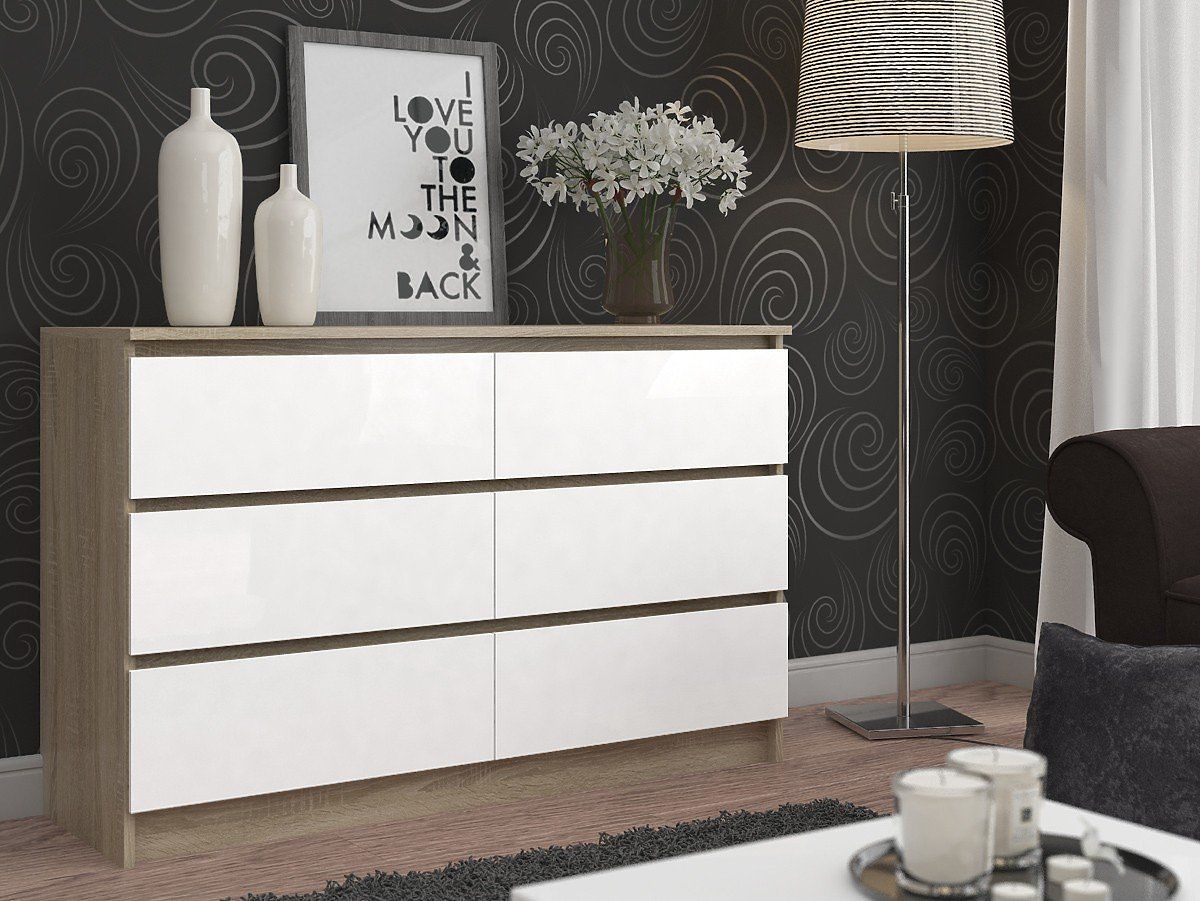 Babynabytek.sk » Detský nábytok / Komody a skrine / Komody / KOMODA K160 6SZ CLP PK DUB SONOMA / BIELA
