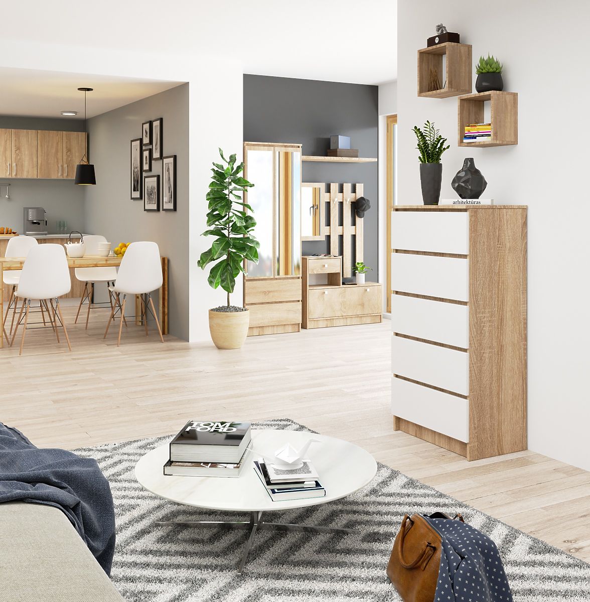 Komoda s 5 zásuvkami v kombinácii farieb Dub Sonoma a Biela. .. viac