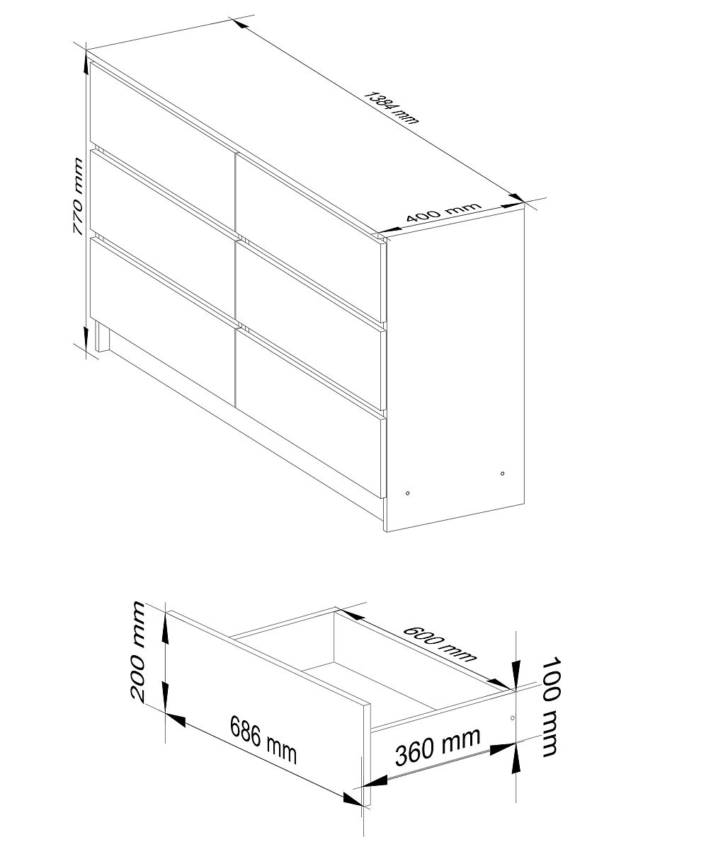 - Komoda vyrobená z laminovanej dosky o hrúbke 16 mm vysokej kvality od firmy kronospan odolnej proti oderu