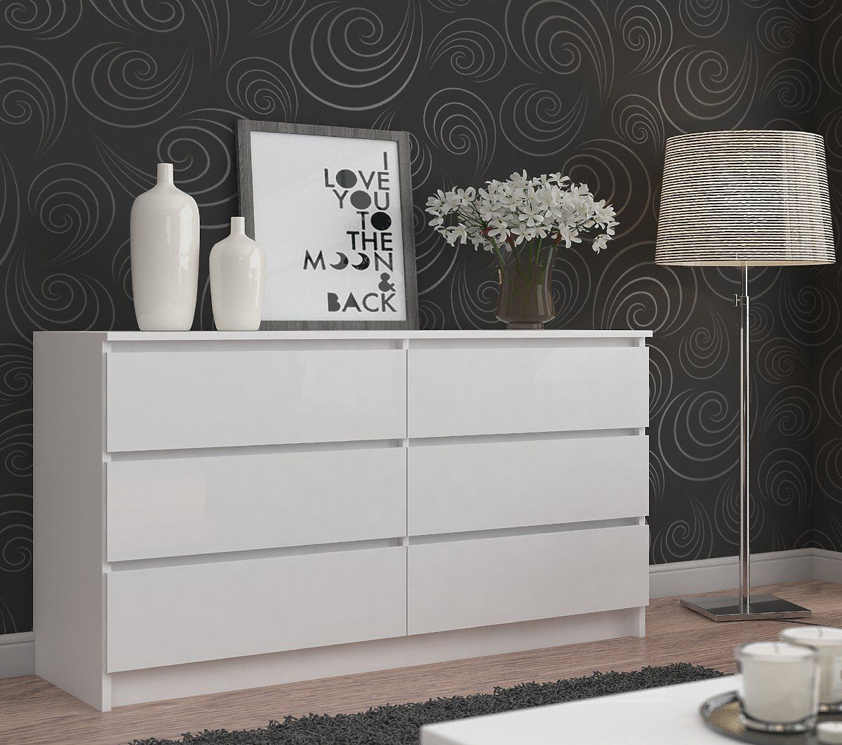 Klasicky krásna komoda v bielej farbe je jednou z mnohých zaujímavých ponúk nášho internetového obchodu. Nábytok sa skladá zo šiestich priestranných zásuviek. Každá z nich bez problémov pojme všetky potrebné predmety v danej miestnosti. Komoda sa veľmi dobre bude vynímať v obývacej izbe, ale aj v detskej alebo mládežníckej izbe. Ďalej môže byť použitá v spálni, hosťovskej izbe, jedálni, predsieni, a tiež v miestnostiach s nebytovým charakterom - napríklad v hoteloch či kanceláriách.
