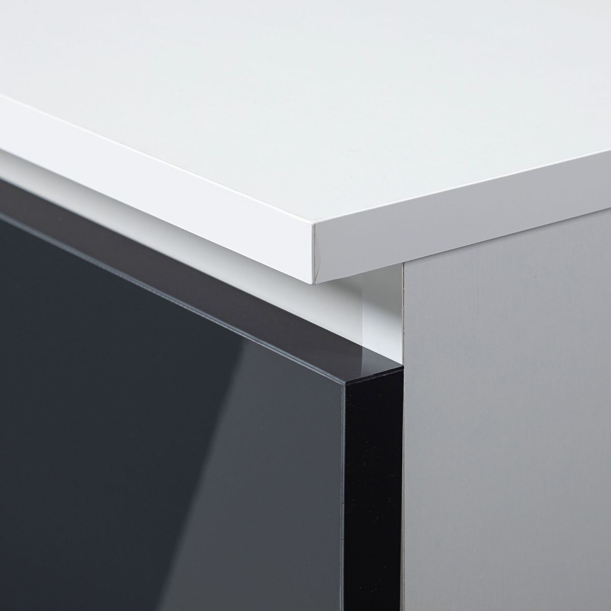 Komoda K 120 cm sa vyznačuje neobvyklou kombináciou farieb. Čelá nábytku sú vyrobené v lesklom grafite a spojené s bielym matným korpusom. Mat a lesk je veľmi zaujímavé riešenie a zároveň mimoriadne univerzálne. Vďaka tomu štýl nábytku zapadá do rôznych aranžmánov, napr. štýlu glamour a newyorského, ktorý oceňuje lesk a lesklé povrchy, alebo minimalistických a moderných aranžmánov.