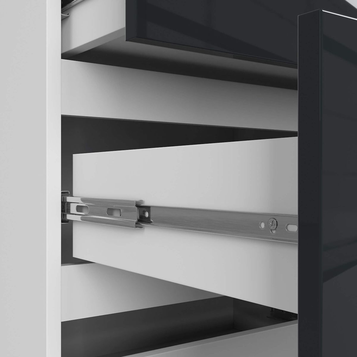- Zásuvky sa pohybujú na kovových guľôčkových pojazdoch