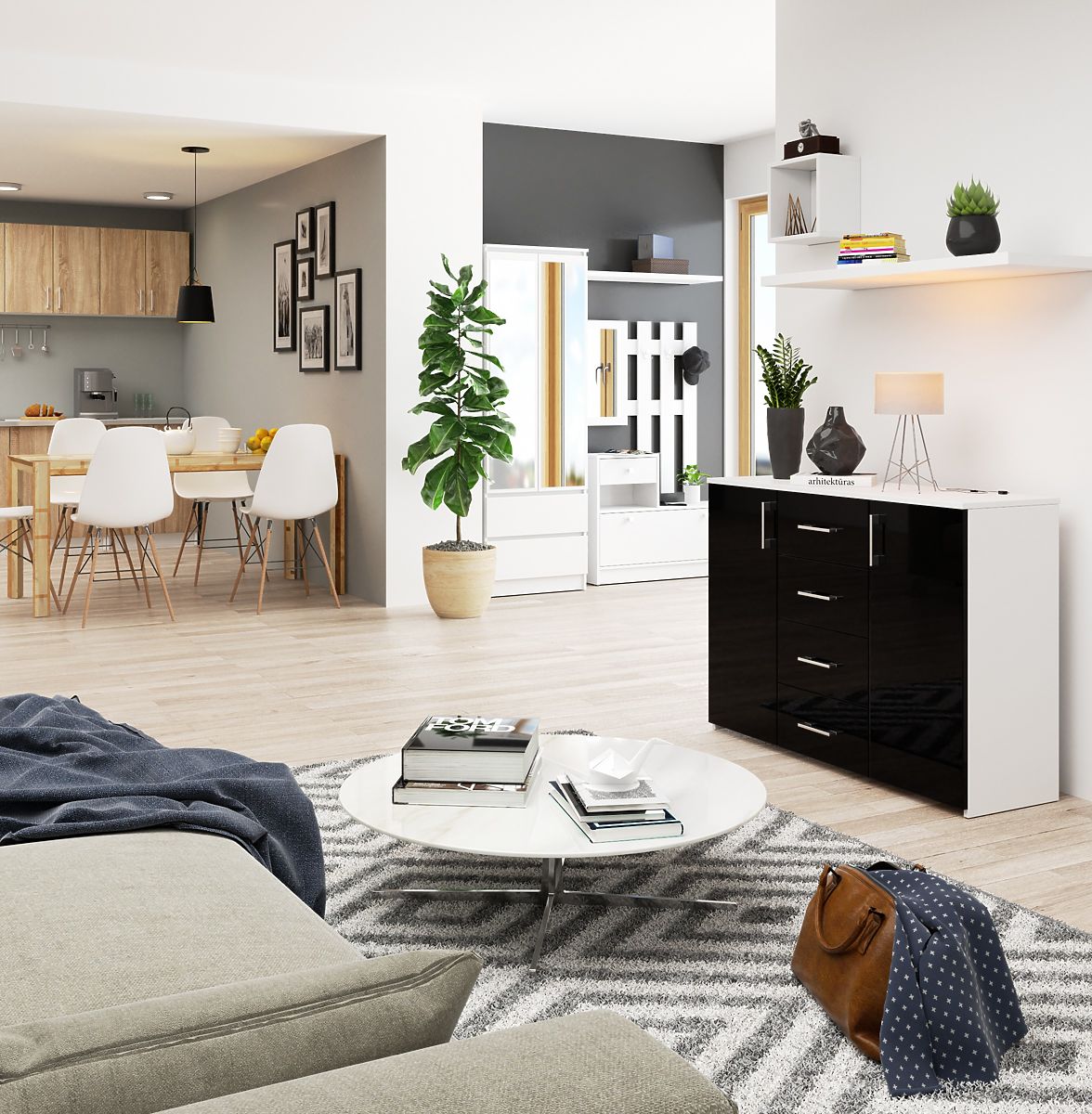 Komoda s vysokým leskom a kovovými pojazdmi pre zásuvky. .. viac