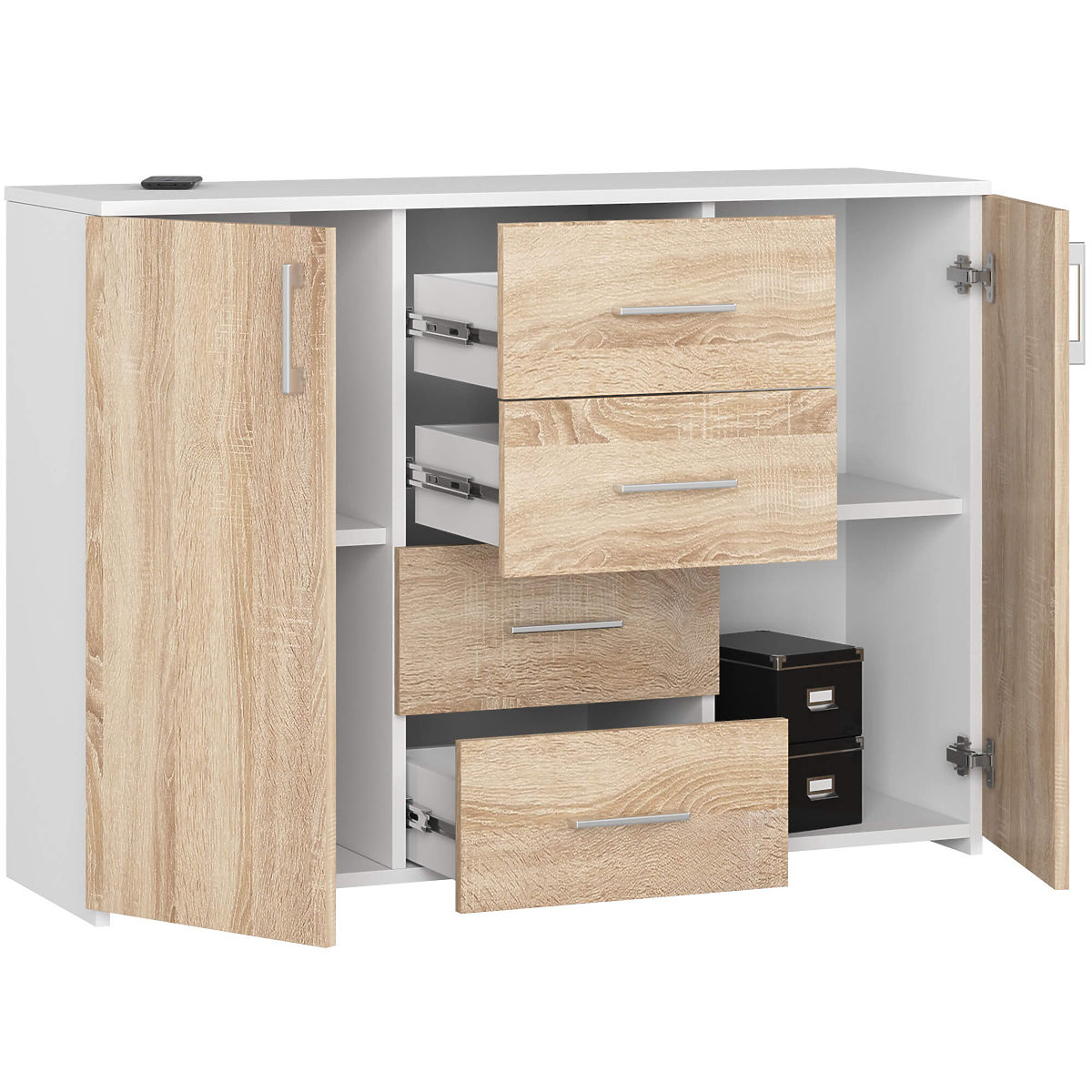 Komoda s bielymi čelami a dubom Sonoma, 110x80x35 cm. .. viac