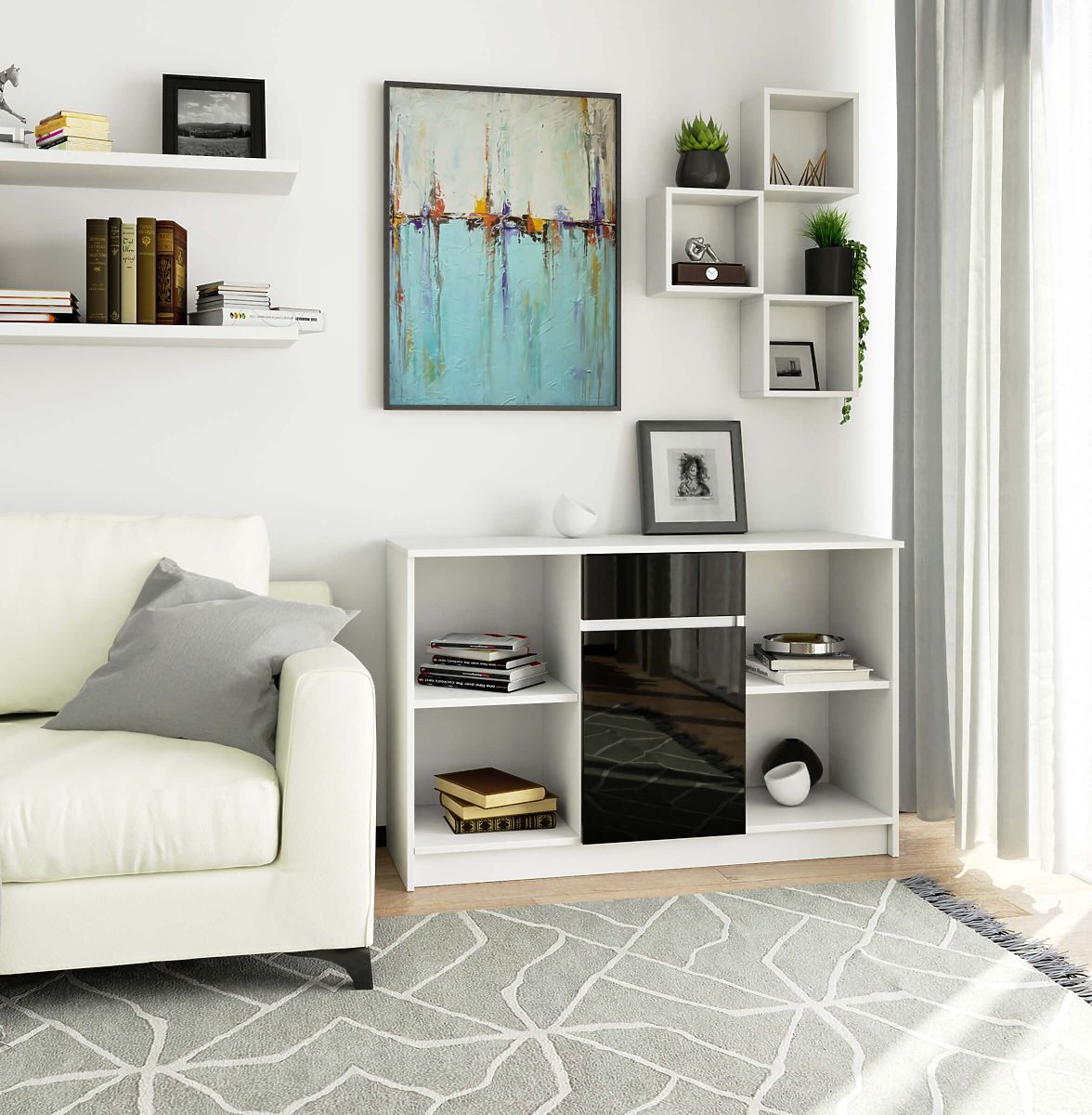 Babynabytek.sk » Knižnice, regále a poličky / Regály / KOMODA B-17 120 cm 1 ZÁSUVKA 1 DVIERKA PK BIELA / ČIERNY LESK