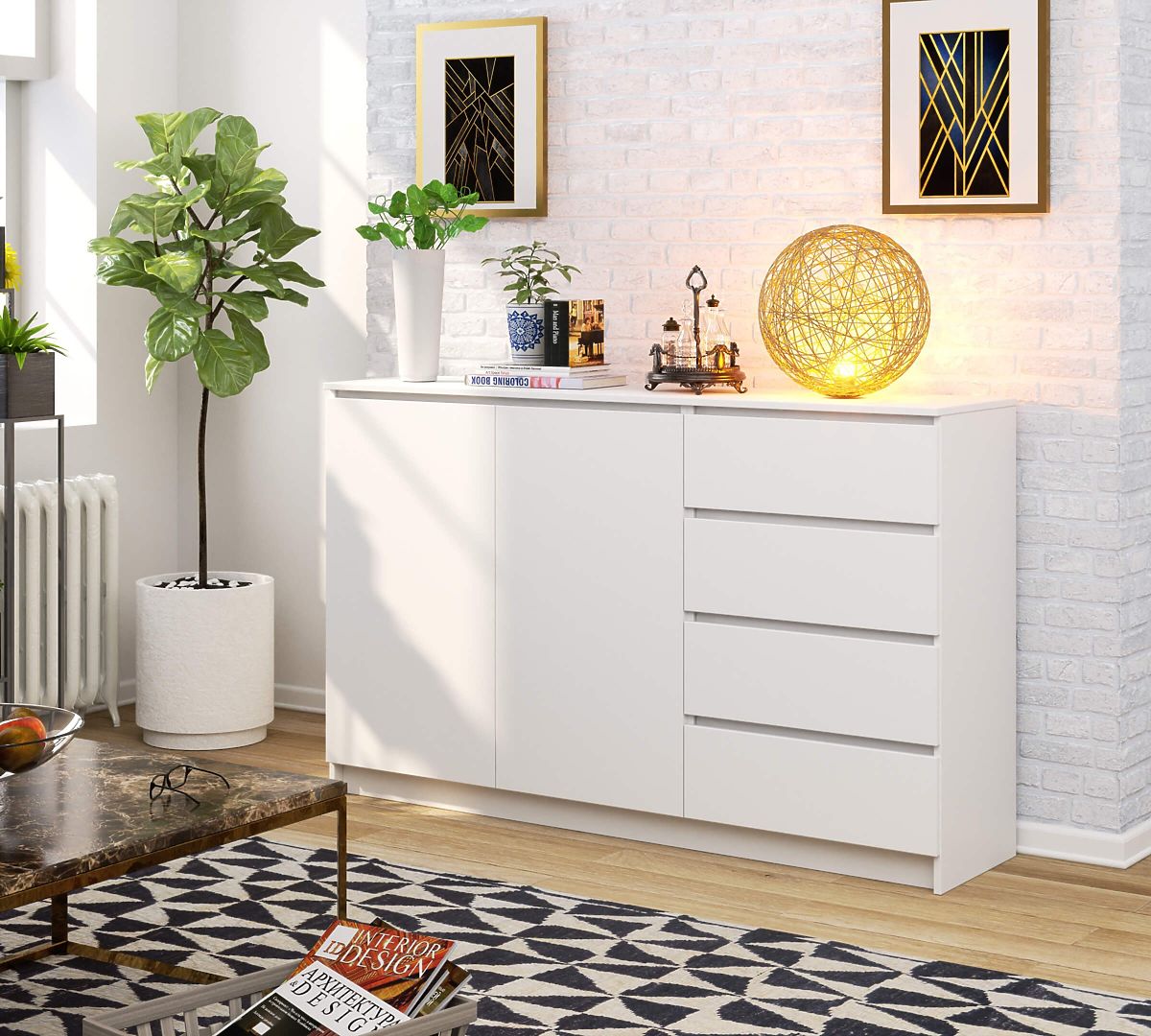 Komoda, model K 013, je nábytok v univerzálnej bielej farbe. Nadčasová biela sa skvele hodí do akéhokoľvek interiérového štýlu, pretože sa výborne kombinuje ako s tlmenými, tak s energickejšími farbami. Komoda je nábytok s výnimočným dizajnom, ktorý predstavuje najvyššie vizuálne hodnoty.